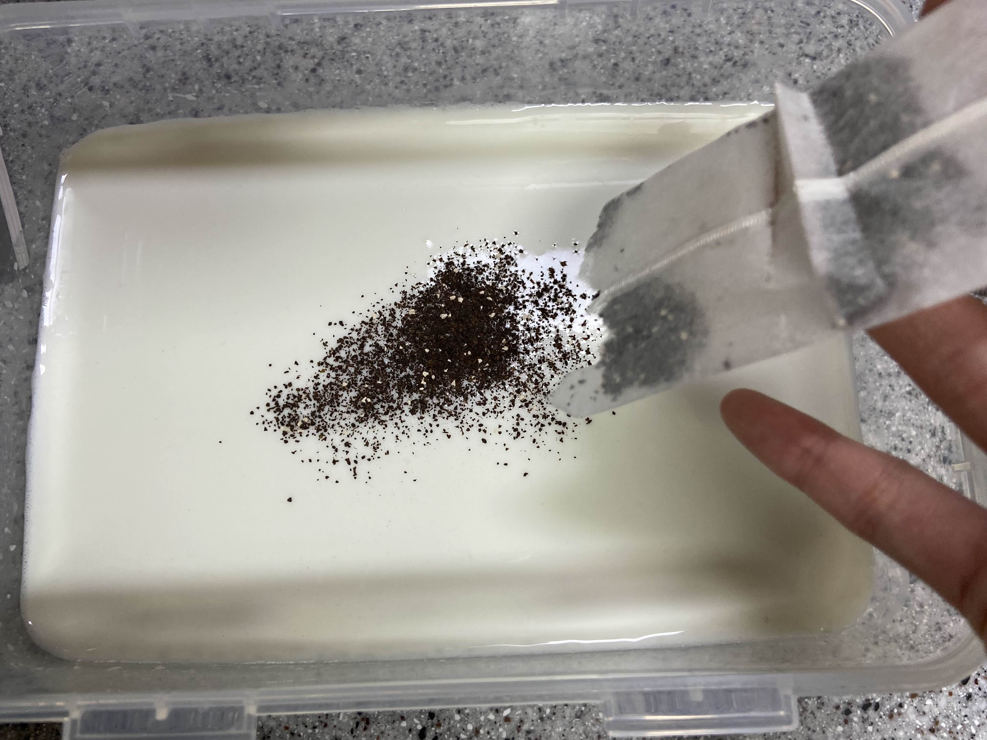 얼그레이 요거트를 만드려면 홍차 티백을 뜯어서 넣어준다. 이게 먹어도 되는 건가 싶지만 먹어도 된다! 심지어 맛있다! 이렇게 티백을 넣으면 얼그레이 향이 진하게 나는 얼그레이 요거트가 된다. 내가 넣은 홍차 티백은 도밍고 꿀 홍차이다. 이게 그냥 물에 타먹어도 달달하고 맛있어서 요거트도 달달하게 만들어져서 더 맛있다.