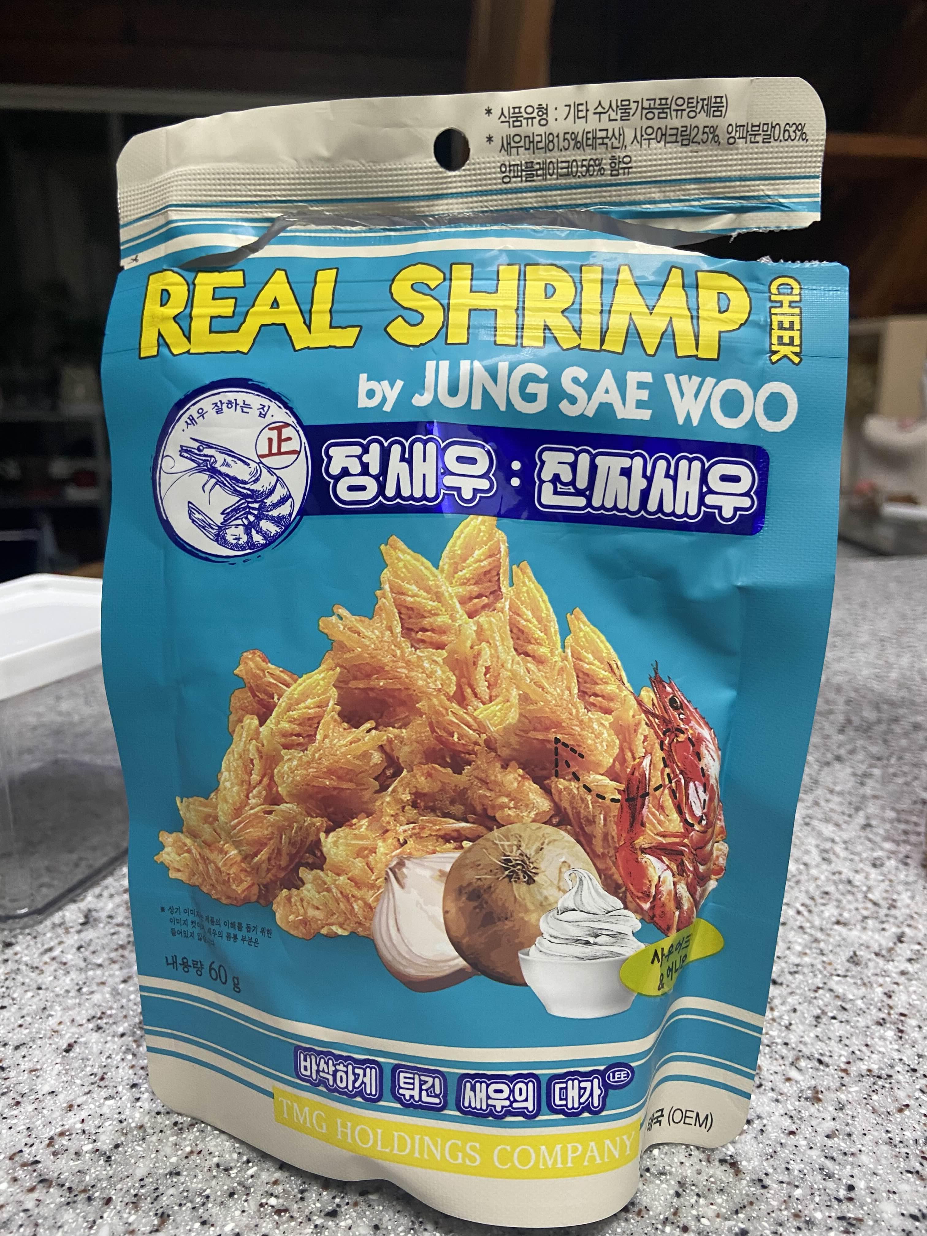 비싸고 고급진 새우깡스타일의 과자다. 근데 이게 찐 새우머리를 튀긴 거라서 새우깡 맛의 3배를 농축시킨 맛이다. 양은 위에 써져 있듯이 약 60개의 새우머리가 들어있어 그렇게 많은 양이 있는 건 아니다. 그래도 밀가루가 섞인 과자가 아니라서 그런지 한번에 그렇게 많이 먹어지지는 않는다. 내가 조절을 하는 것도 있지만 짭잘한게 땡길 때 네다섯개씩 집어먹고 지퍼팩이라서 보관하기도 간편하다. 지금 일주일 째 먹는 중….ㅎ