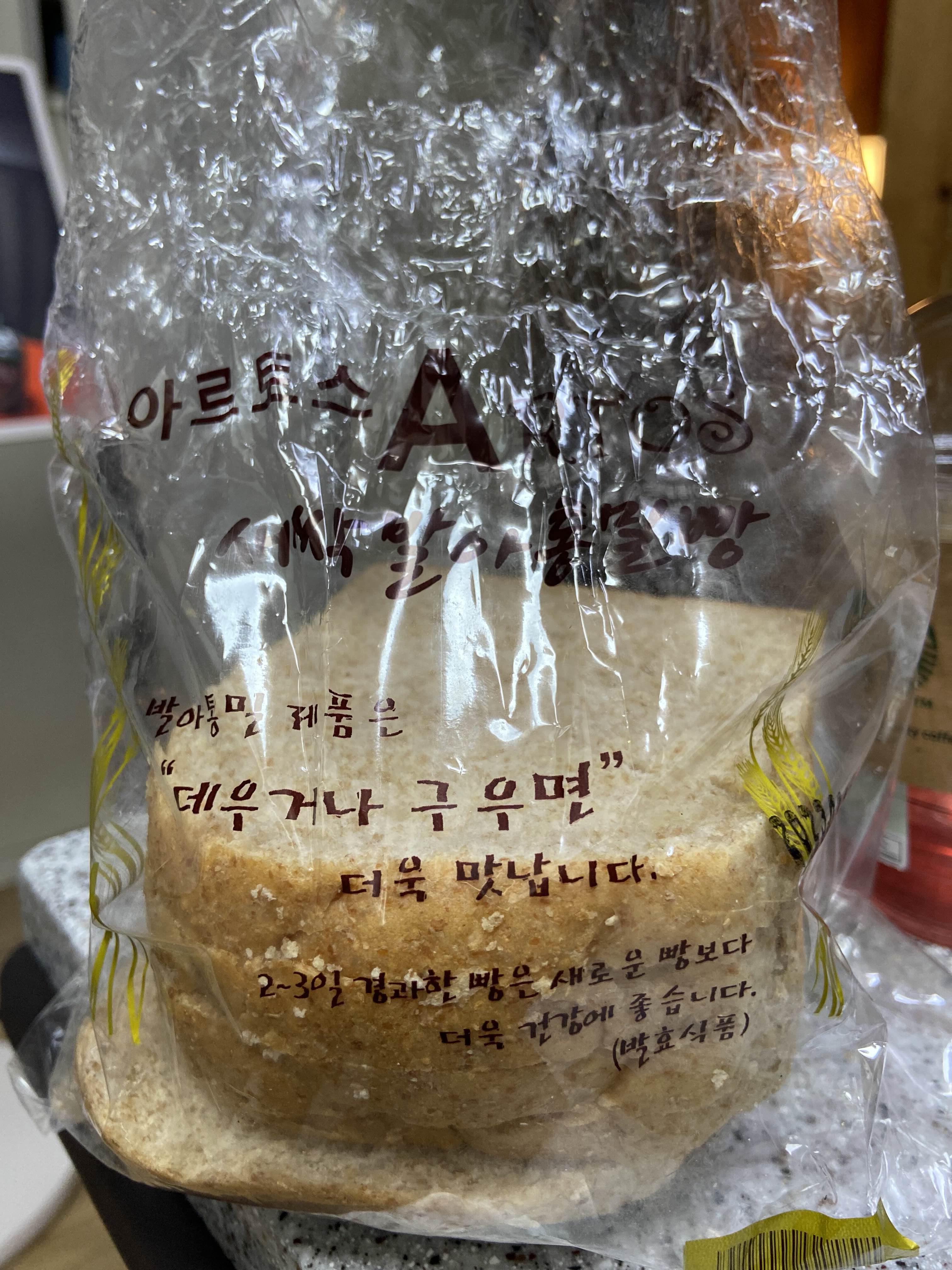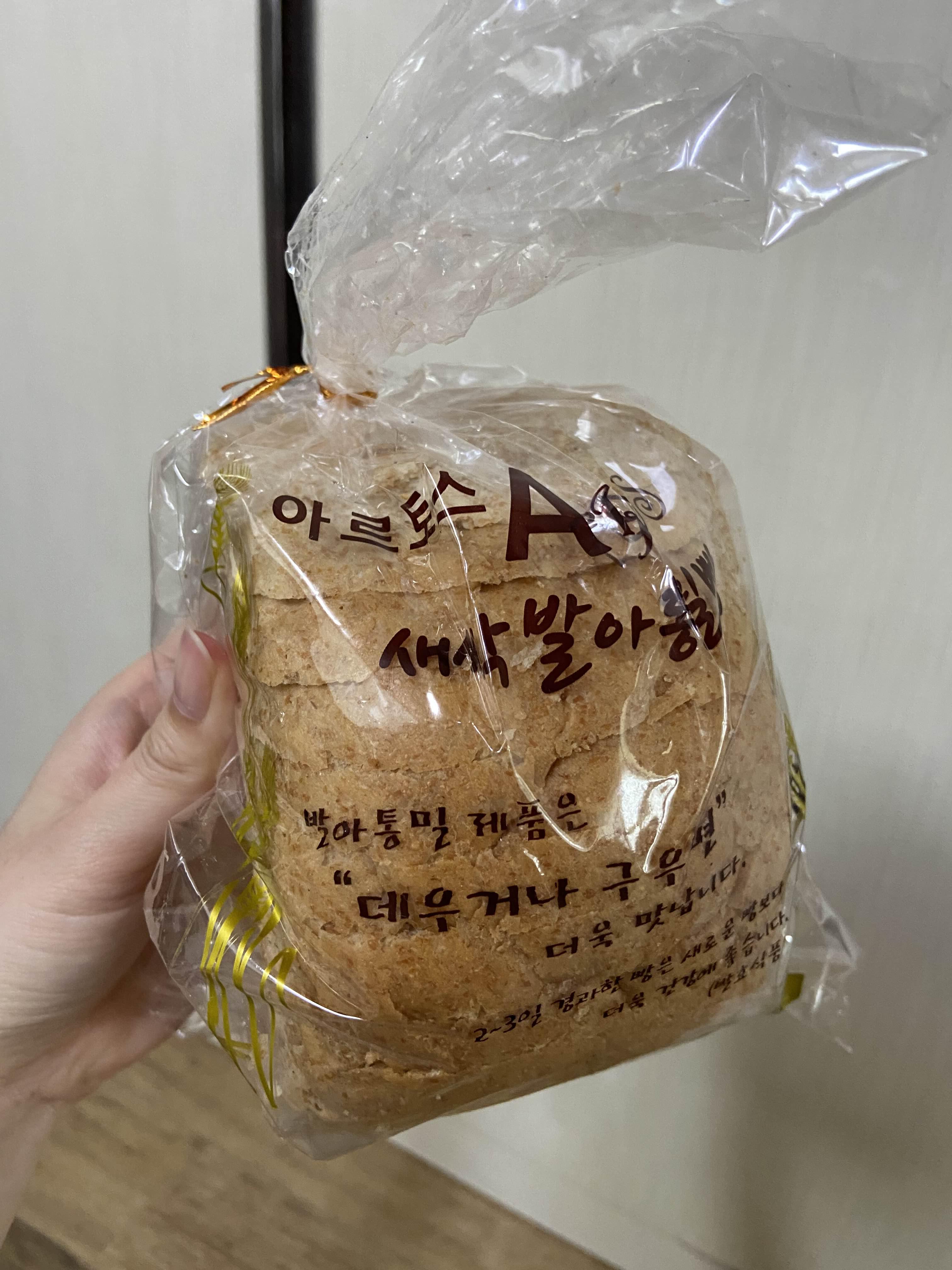 크기는 작지만 가격도 저렴한 편이다. 빵 봉지에 2-3일 경과한 빵은 새로운 빵보다 더욱 건강에 좋다고 써져있다. 뭔가 더 건강해질 것 같은 느낌적인 느낌. 마켓컬리에서 보던 이미지보다 의외로 동네 빵집에서 산 식빵같아 친근했다. 그리고 에어프라이기에 구워먹었는데 진짜 맛있다. 빵에서 달달한 맛도 나고 고소하고 맛있었음! 지금은 냉동해 둔 상태이다. 식빵은 유통기한이 길지 않아 냉동해두고 꺼내서 구워먹으면 갓 나온 빵같이 먹을 수 있다.