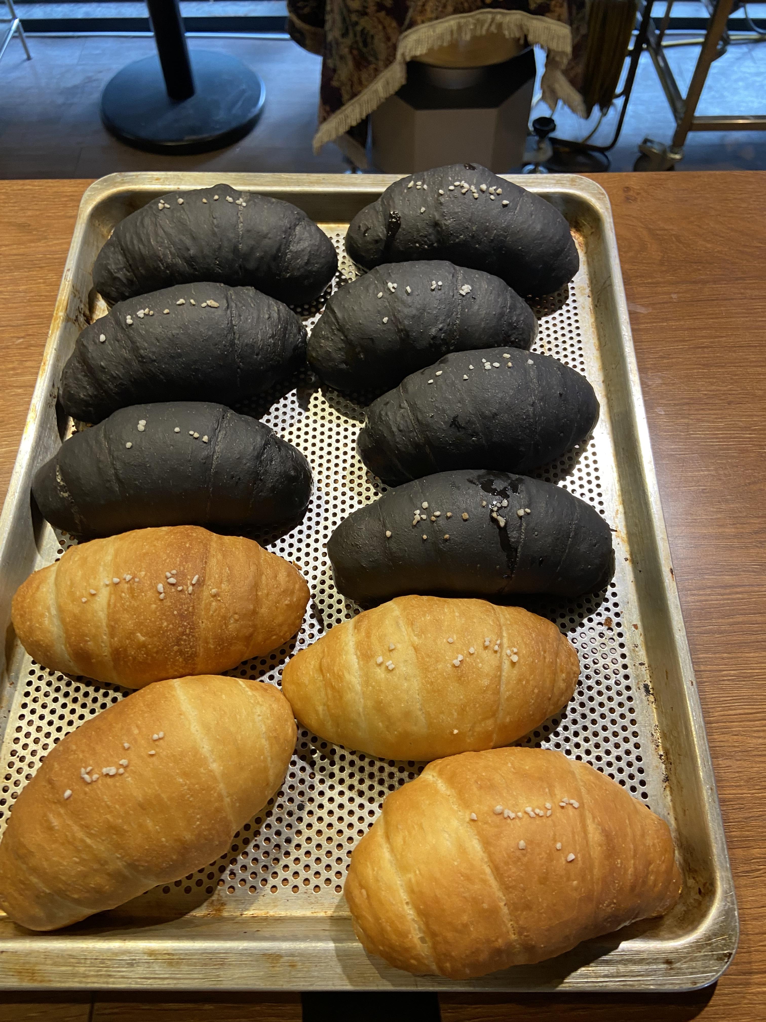 뒤늦게 나온 소금빵도 맛을 안 볼 수가 없어서 처음 먹어보는 먹물 소금빵으로 픽!