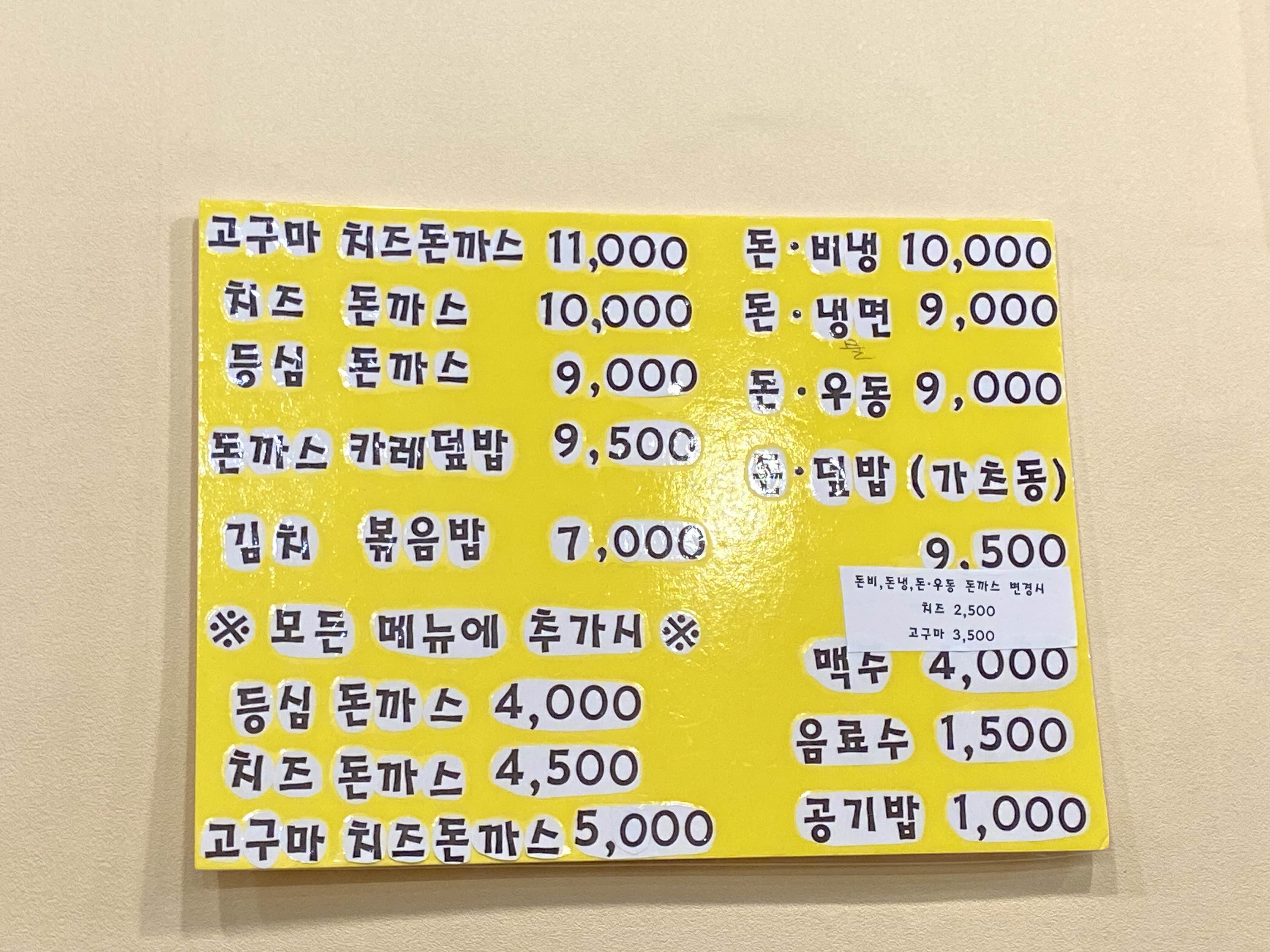 돈냉이나 돈우동 이렇게 세트로 시킬 때 돈까스를 변경할 수 있다. 치즈 2,500 / 고구마 3,500