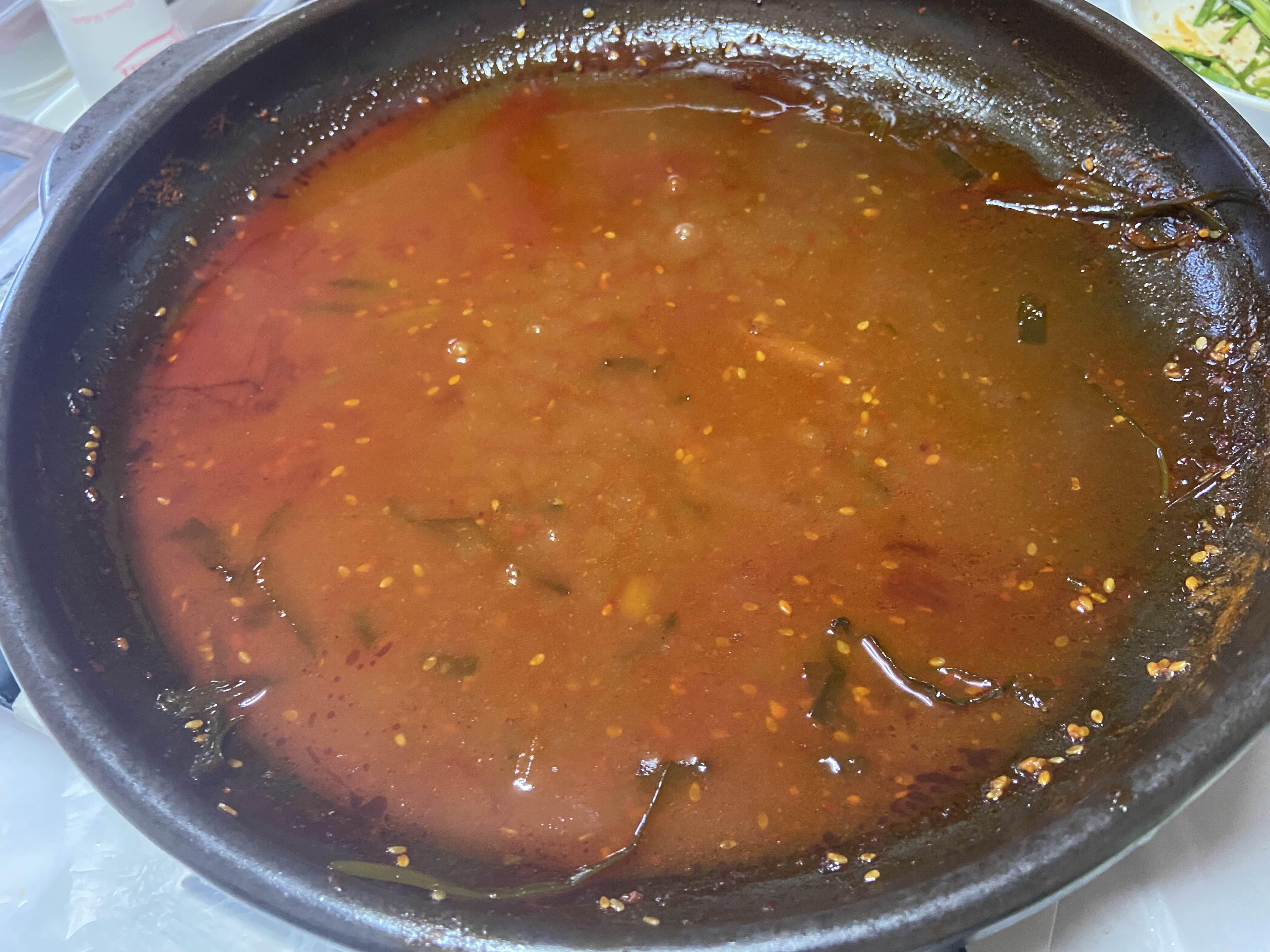 공기밥 시켜서 먹는데 넘 맛있어서 여기에 밥 볶아먹으면 맛있겠다는 생각이 절로 들었다. 다른 블로그 보니까 메뉴엔 없어도 볶음밥으로 먹었다고 한 걸 봤는데… 나도 그러고 싶었지만 어죽을 시켰기 때문에 어죽 먹고 생각하기로 보류!
