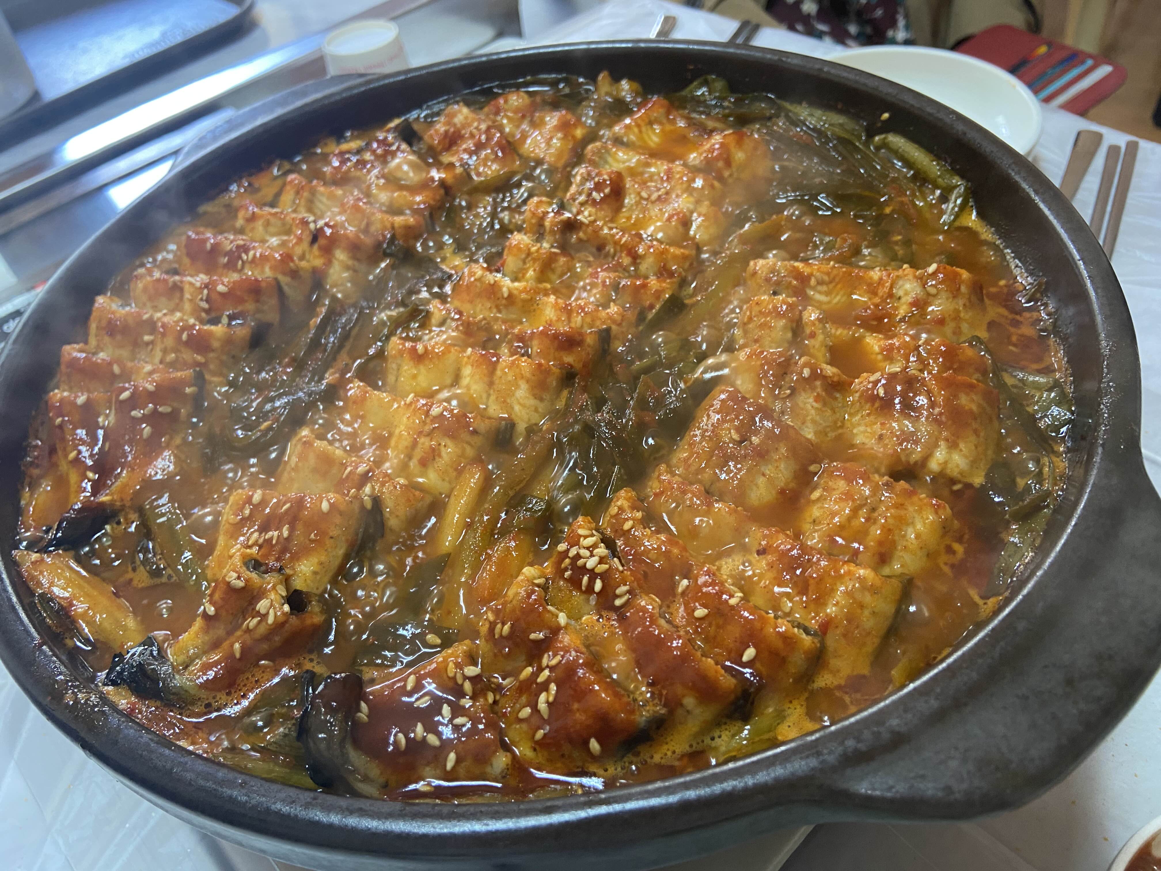 파김치 장어가 서산 해미의 명물인지 다른 가게들도 팔고 있었다. 그치만 우리가 이곳을 고른 이유는 음식 세팅이 먹음직스러웠기 때문이었다!
