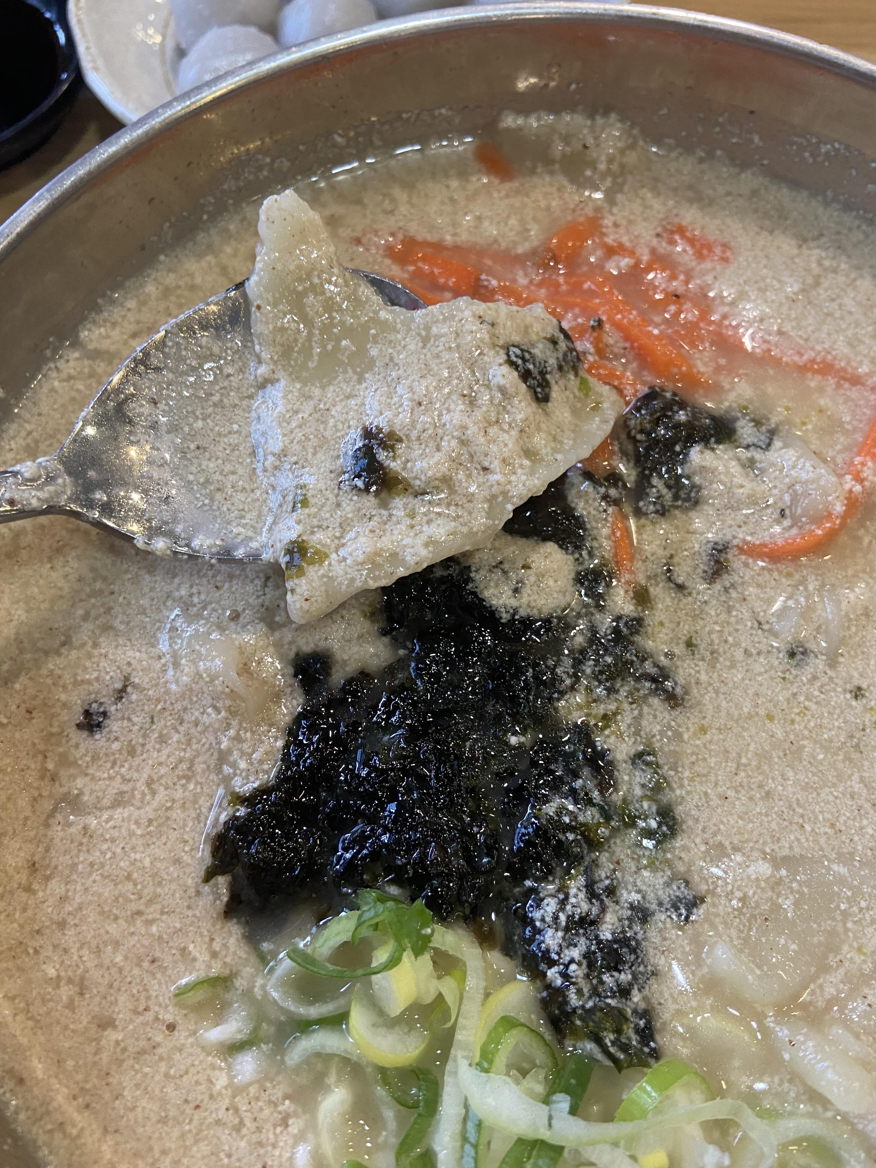 나는 가면 웬만하면 들깨로 먹는 듯. 이게 거의 들깨죽이여서 국물만 먹어도 배가 든든~하다.