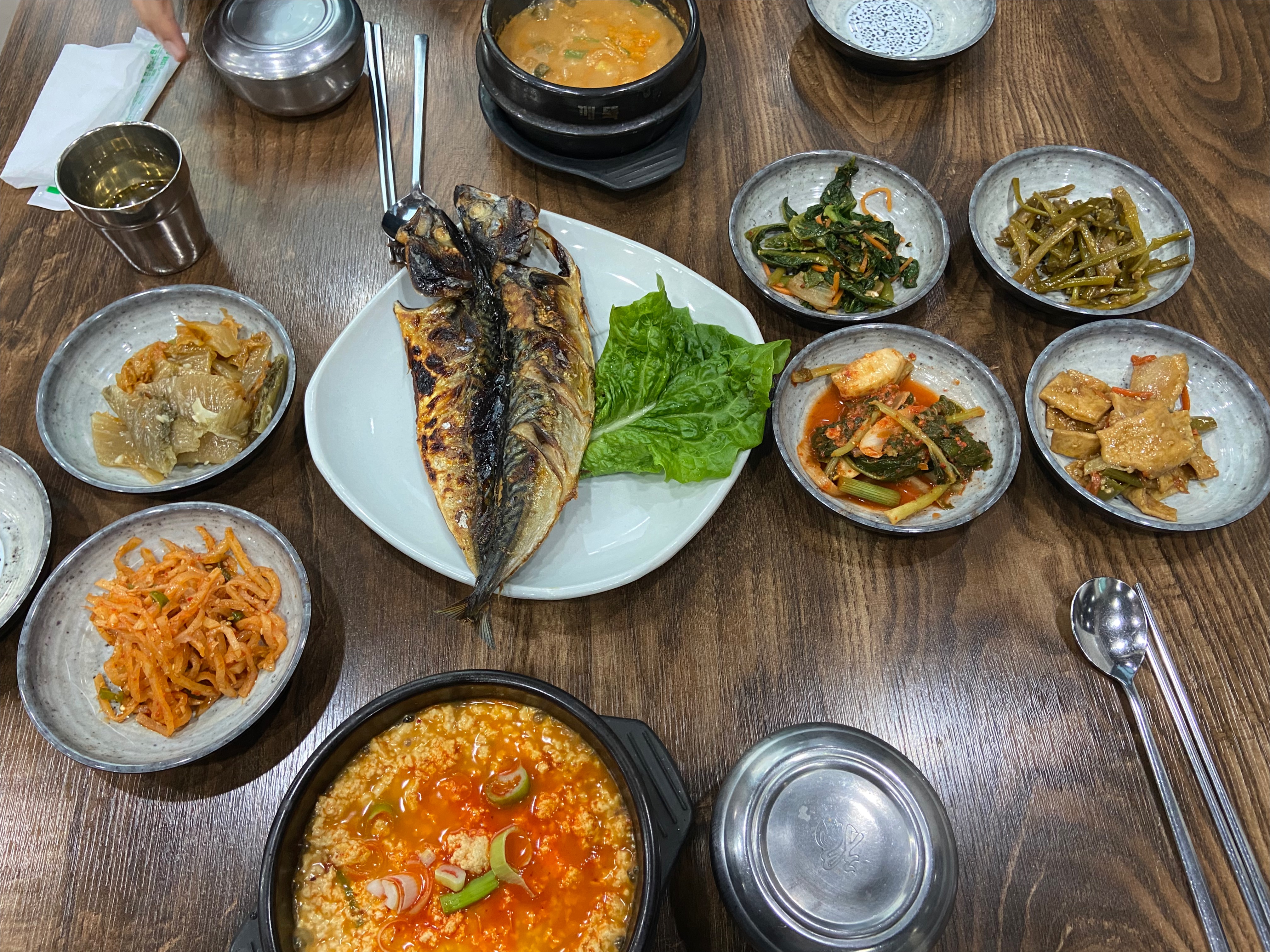 우리가 시킨 메뉴는 얼큰 순두부, 청국장, 고등어 한마리
