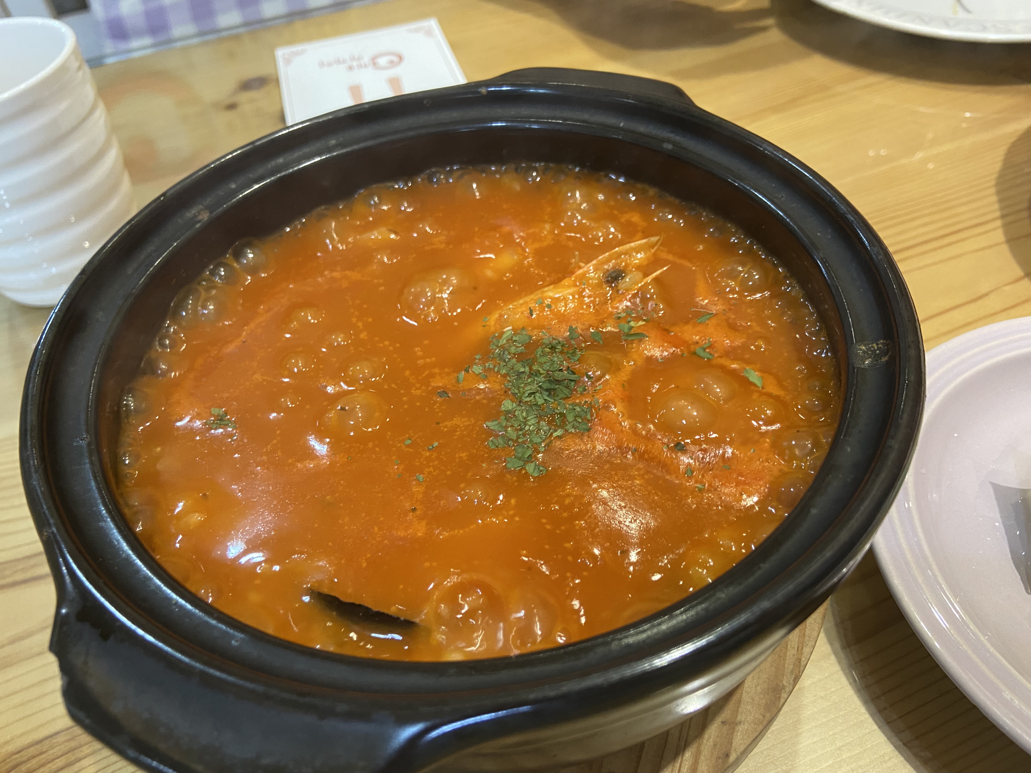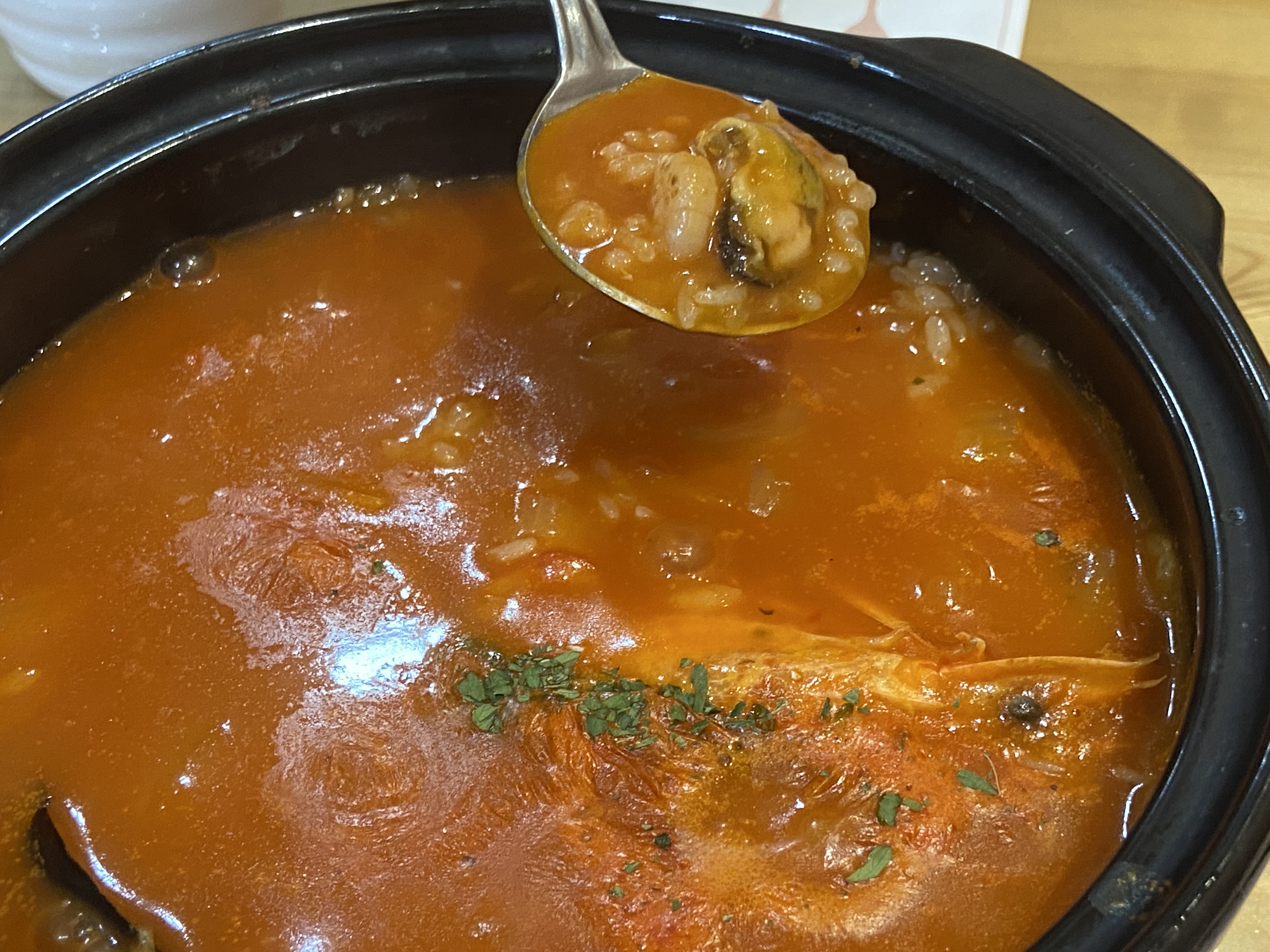 요렇게 안에 해산물 듬뿍과 밥이 들어있다. 그래서 토마토 소스에서도 해산물 맛이 듬뿍 나고 국밥 먹는 기분이었다.