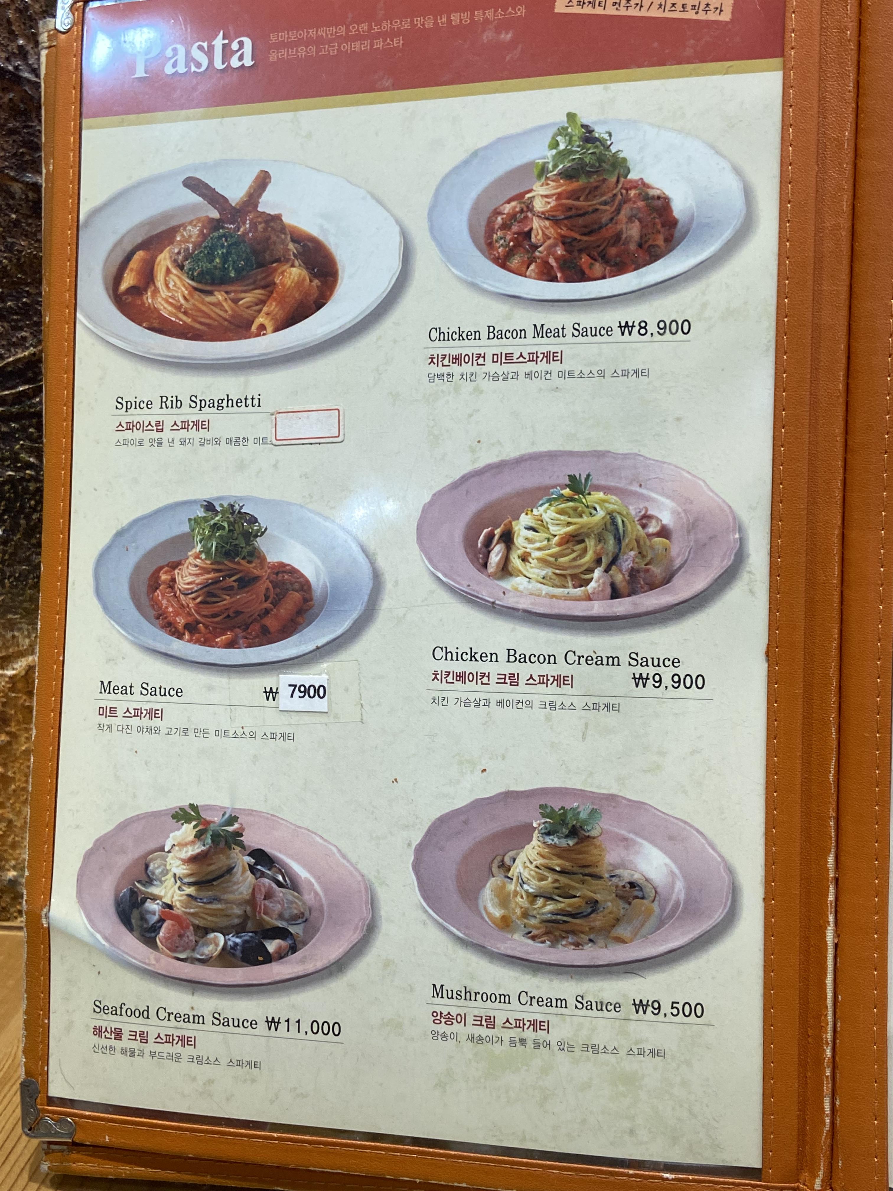 파스타 종류가 많아서 진짜 고르기 어려웠는데..! 알리오 올리오가 근본이니까 먹어봐야한다고 생각.