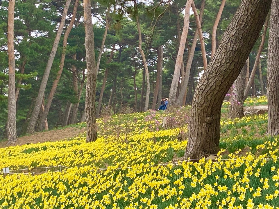안내도만 봐도 알다시피 온통 수선화다. 모든 곳이 수선화로 이루어진 공간. 수선화를 보러 사람들이 찾아오니 더더더더 범위를 넓히고 있는지 뒷편으로도 끝도 없이 수선화가 심어져있다. 범위가 워낙 넓다보니 핀 곳도 있고 아직 피지 않은 곳도 있었다. 해를 받는 곳의 수선화는 활짝 폈지만 그렇지 않은 구간도 있다.