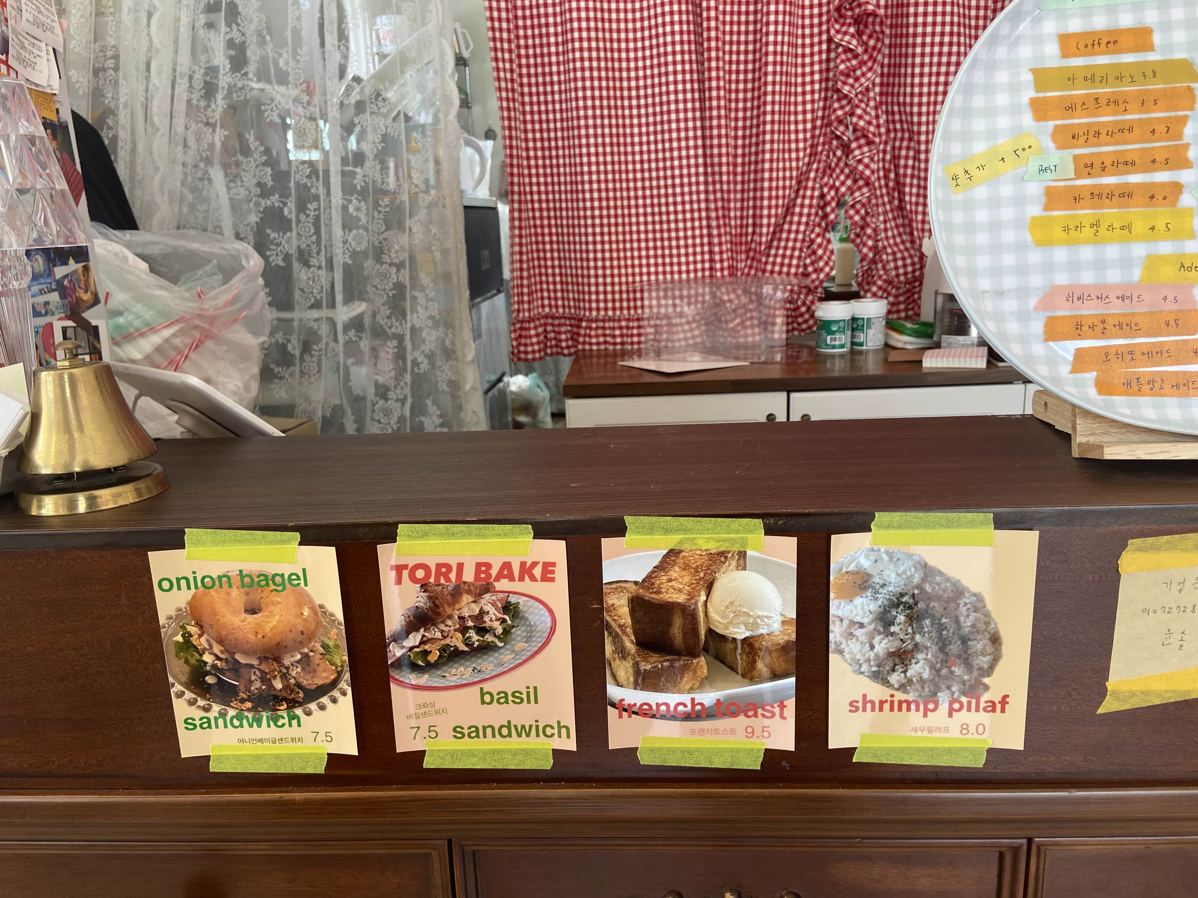사장님은 안에서 빵도 만드시고 할 일을 하시고 우린 밖에서 천천히 빵과 음료를 고른 뒤 주문대 위에 있는 종을 치면 사장님이 나오신다. 쿠쿠
