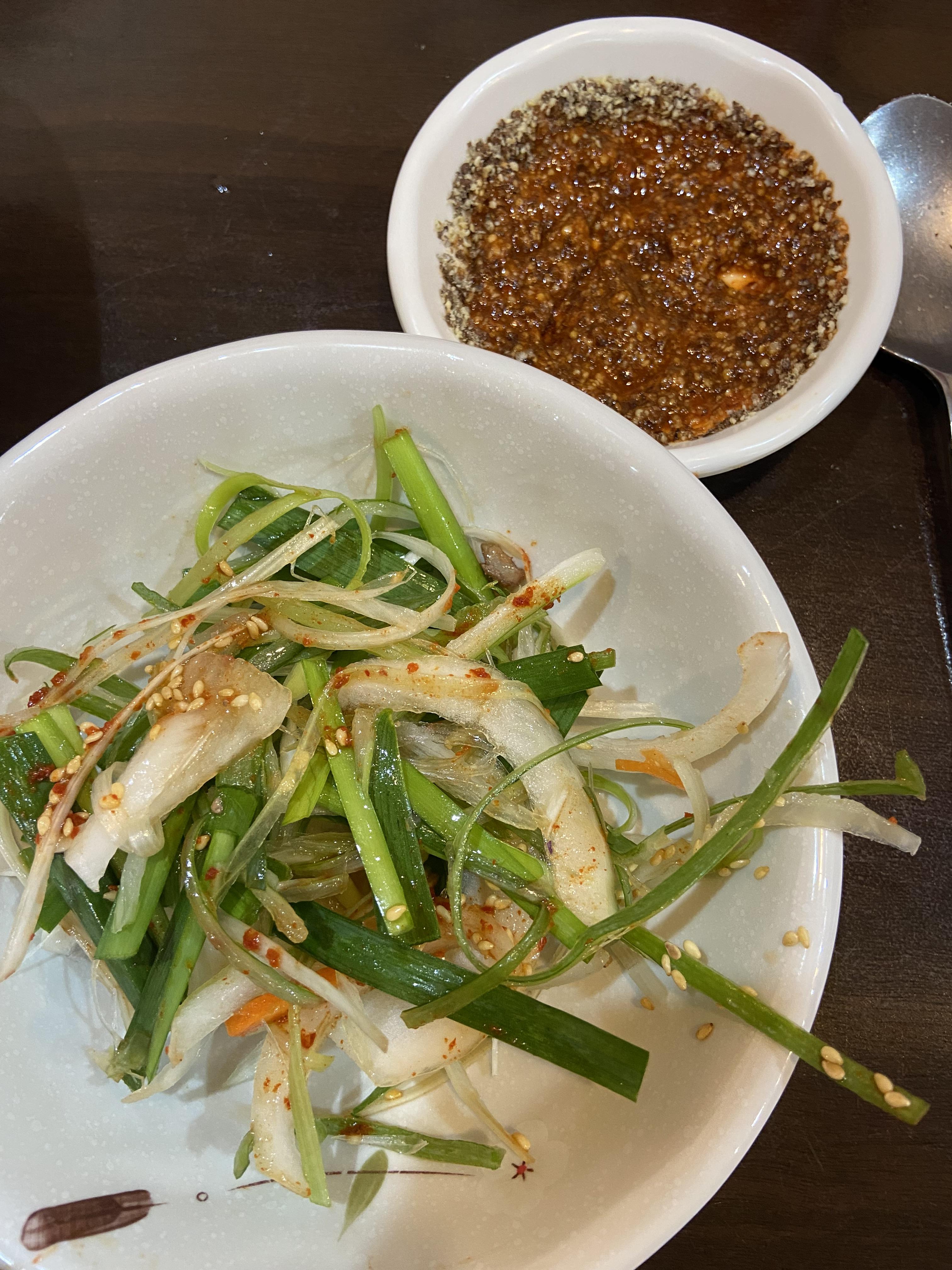 게다가 셀프바에 부추랑 야채를 추가로 먹을 수 있다