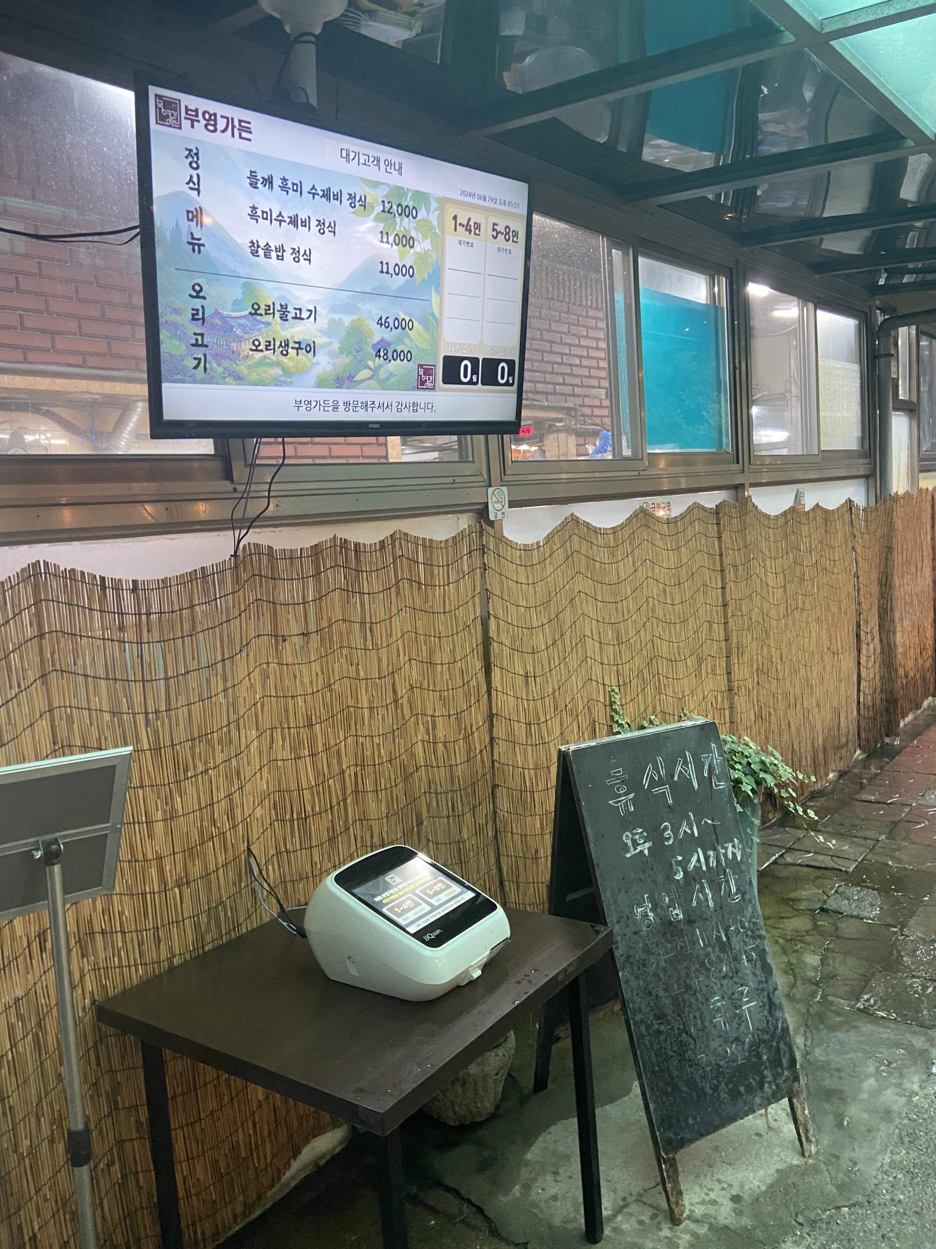 식당을 운영한지 오래된 곳인데 손님이 점점 많아졌는지 이런 번호표를 뽑고 대기하는 곳까지 만들어져 있었다.