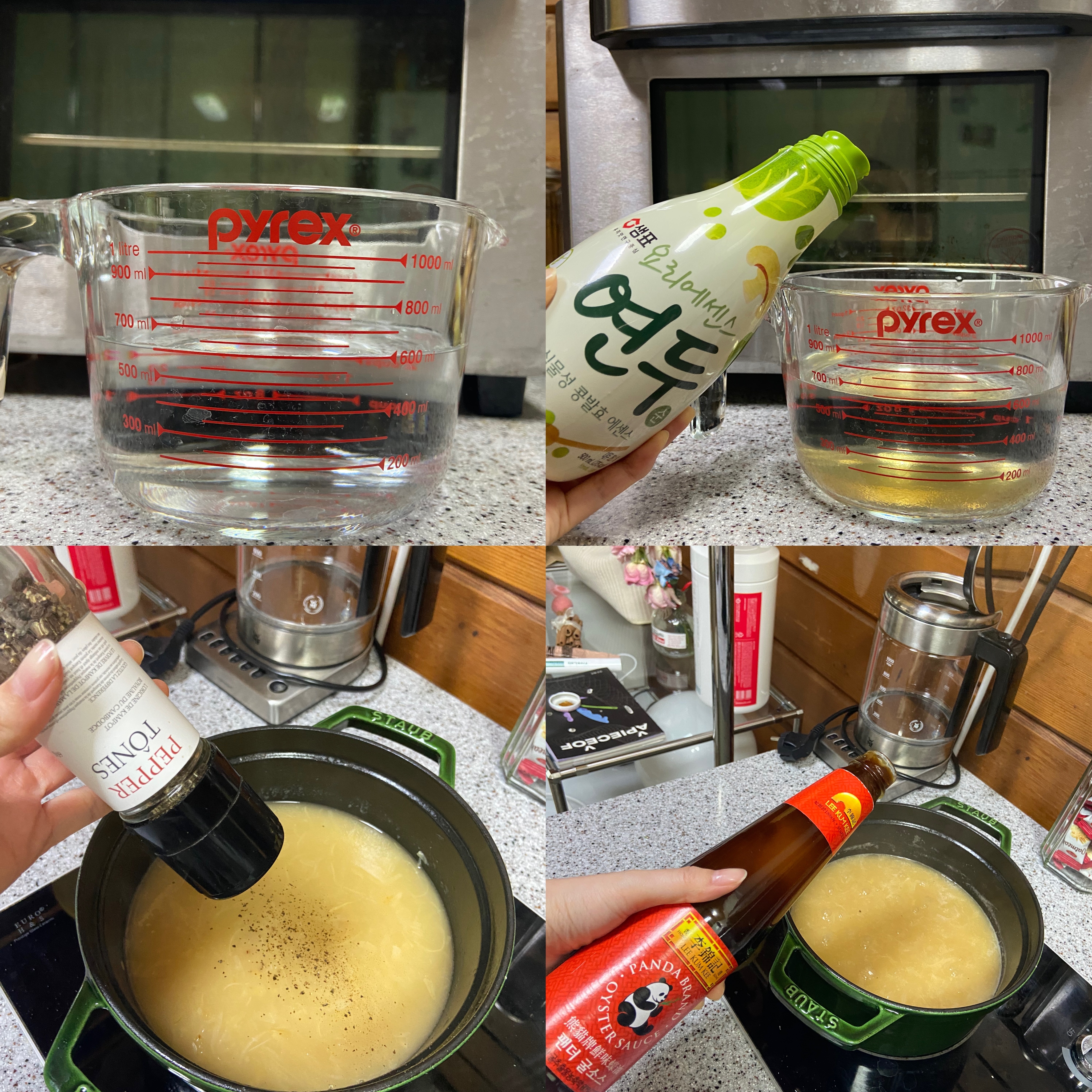 4. 육수 제작! 물 600ml에 연두 한스푼 반! 난 두스푼 넣었는데 짰다. 개인의 취향이니 알아서 넣도록.