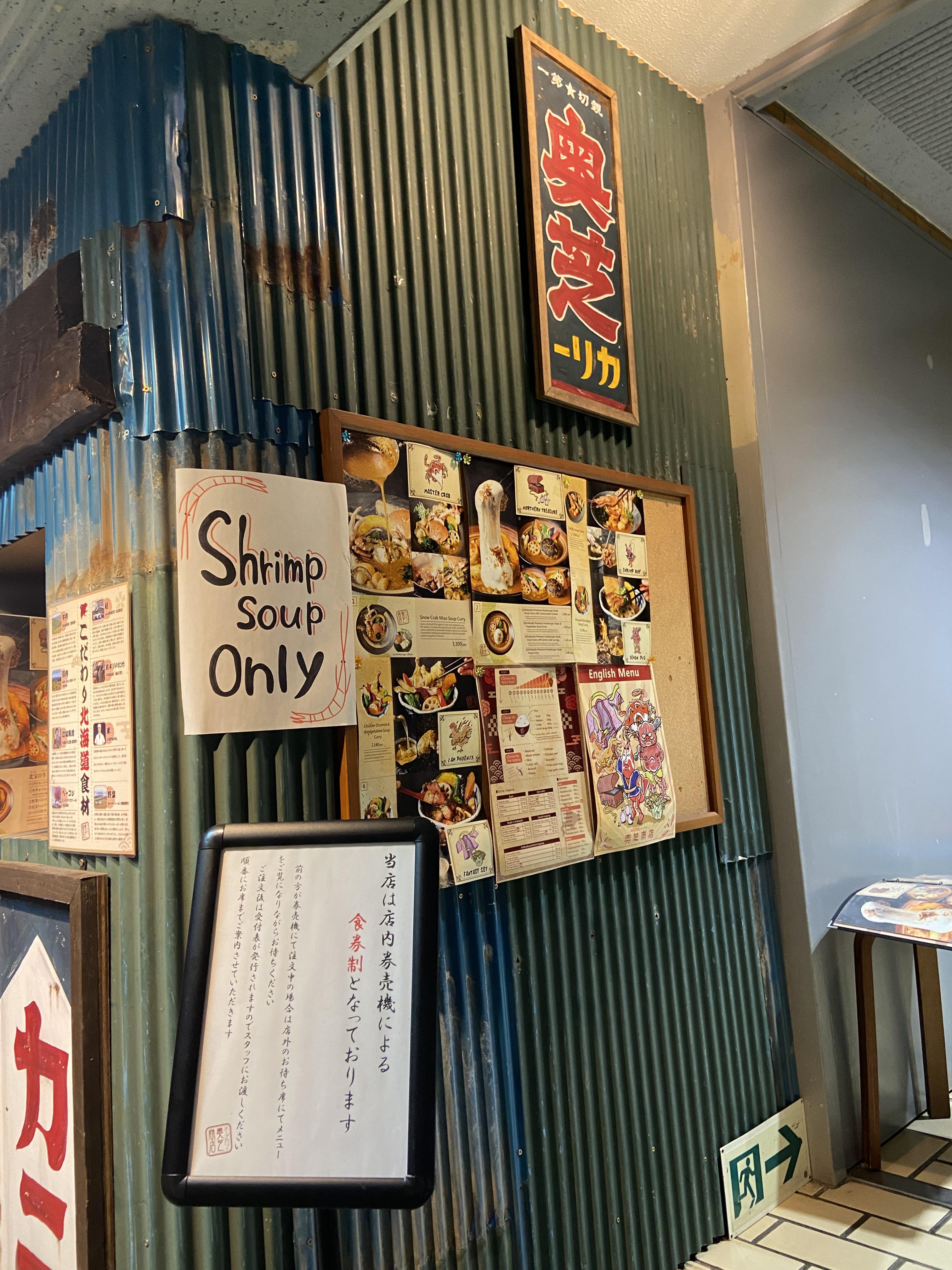 어느 블로그에서 삿포로를 여러번 간 사람이 가라쿠 -> 스아게 -> 오쿠시바 쇼텐으로 스프카레 맛집이 갱신되었다는 글을 보고 가게 되었다. 이곳의 특징은 스프카레 국물에 새우 육수를 쓴다는 것이다.