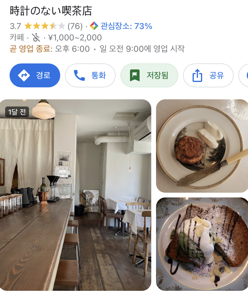 토케이노나이 킷사텐 이라는 곳인데 한글로 구글맵에 치면 안나오니 주소로 보시라.
