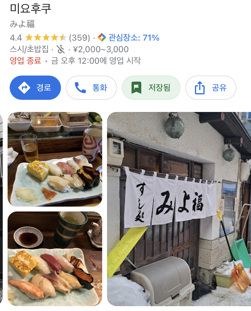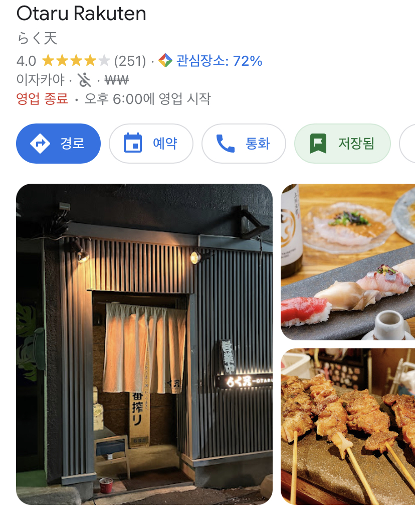 이 외에 내가 가고 싶어서 찾았던 스시 맛집 리스트들. 첫번째 사진의 라쿠텐은 이자카야이다.