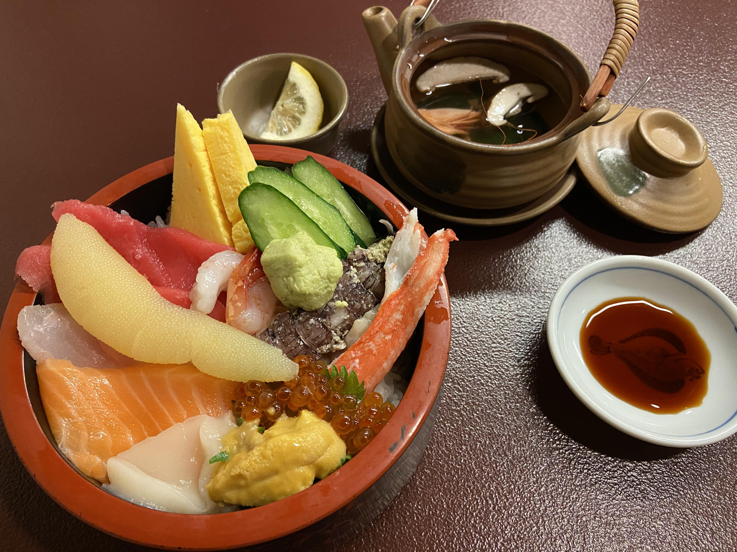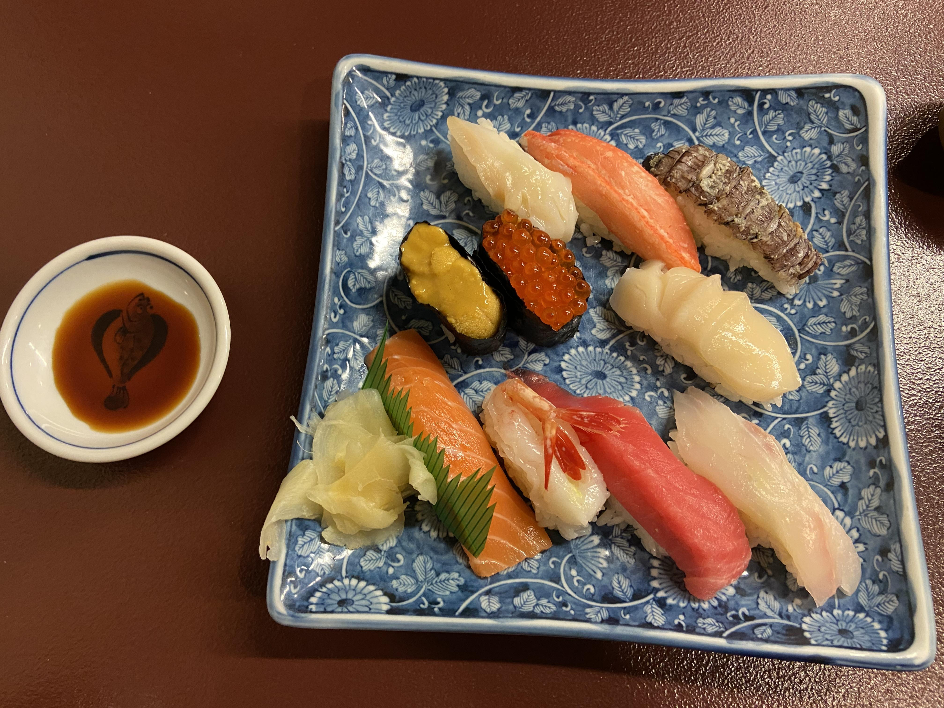 카이센동에 대한 기대가 너무 컸을까? 처음에 먹었을 땐 너무 맛있고 그랬는데... 청어알, 갯가재(?) 같은 생소한 종류를 먹다보니 익숙한 맛있음 보다 새로움이 커서 맛을 음미하지 못했다. 그리고 회와 밥을 덮밥처럼 먹는 형식이 밥과 회를 같은 비율로 먹어줘야 하는 것에 신경쓰다보니 어려웠다. 해산물을 잘 못 먹는 배우자는 스시를 먹었는데 오히려 나보다 맛있게 먹었다...ㅎ