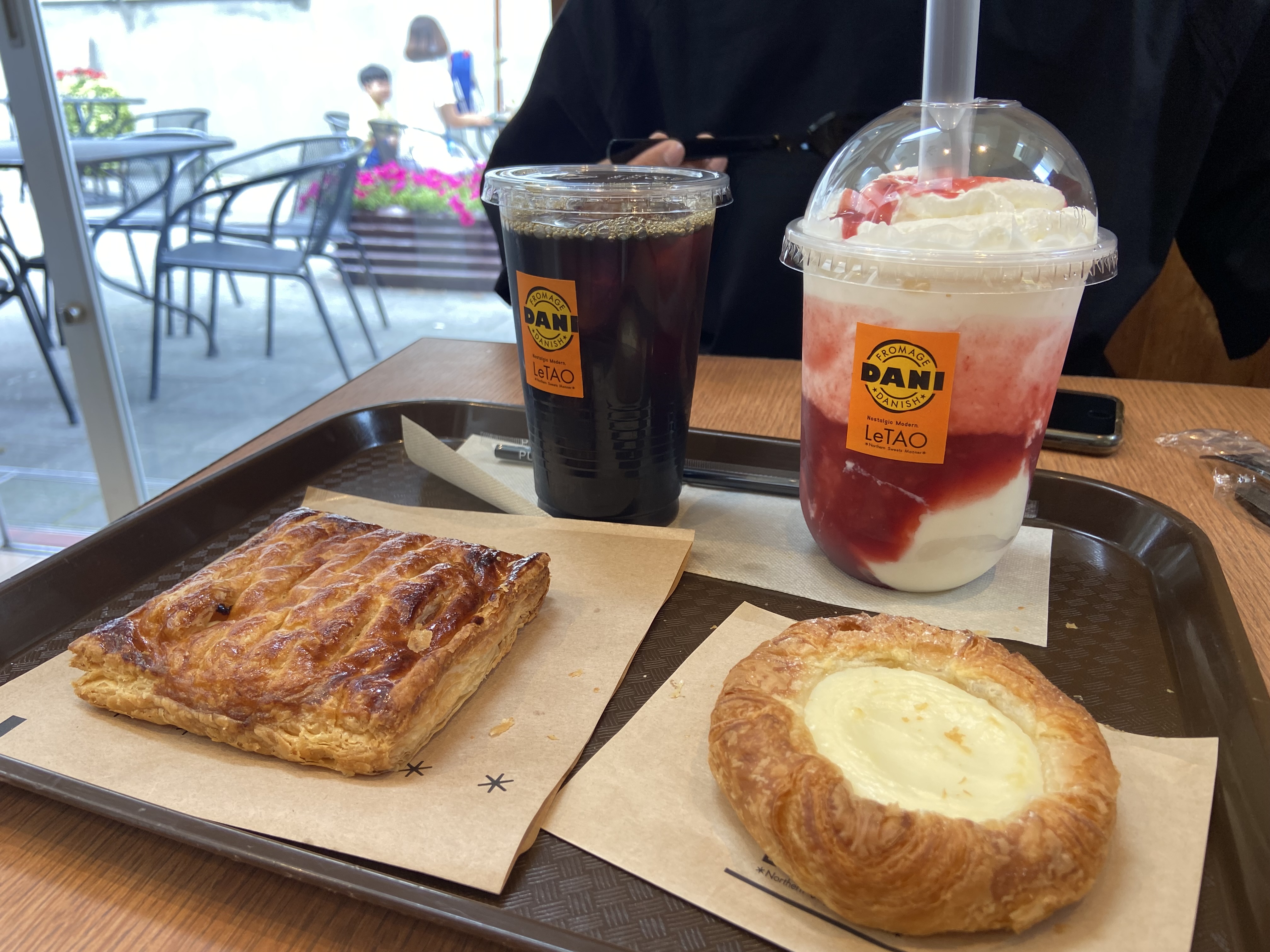 프로마쥬 치즈 데니쉬... 가볍게 먹은 디저트이지만... 맛..있었다! 이 치즈가 그냥 크림치즈가 아니라 살짝 꾸리꾸리한 치즈도 섞여 있어서 더 풍미가 있고 맛있다. 이거 재밌네..? 이번 여행에서 일본이 치즈에 진심인 나라인 걸 너무 느꼈다. 식사든 디저트든 치즈가 들어있는 것이 많고 심지어 듬뿍 들어있다. 게다가 치즈를 활용할 때 피자치즈로 쓰이는 모짜렐라 뿐만 아니라 다른 블루 치즈나 고르곤졸라 치즈도 믹스해서 만든다. 그러면 훨씬 맛있다는 걸 깨달아버림.