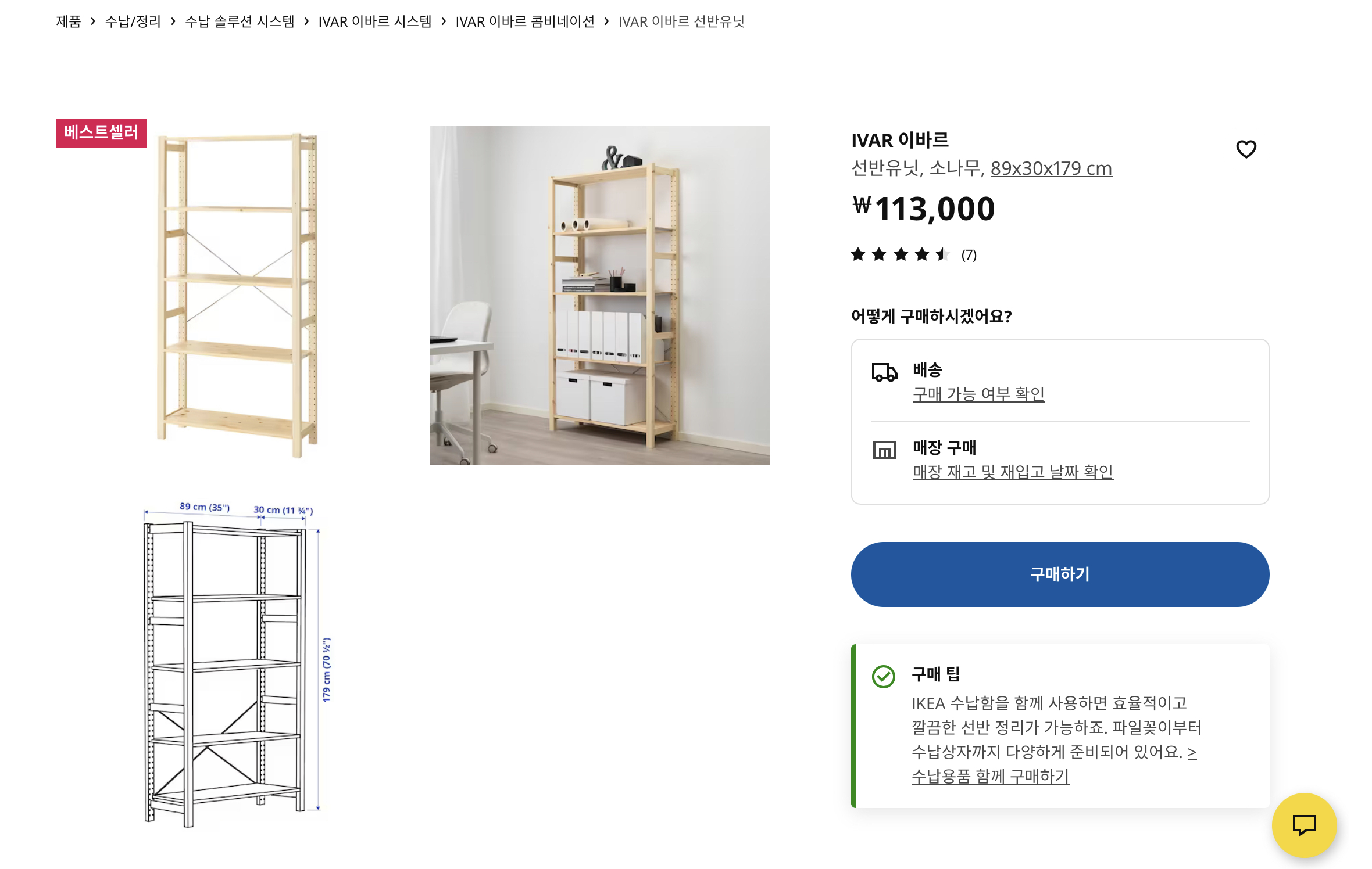 펜트리처럼 사용할 목적으로 구매했다. 포스팅을 하기 위해 다시 온라인몰에 들어갔더니 내가 샀을 때보다 가격이 올랐다. 물가가 오르니 가구도 오르는구나. 정말정말 추천하는 나무선반이다. 이바르 라인으로 다른 사이즈도 있으니 사이즈를 잘 맞춰보고 구매하길 바란다. 매장에 가서 구매 할 때는 양 옆에 기둥 2개, 선반, 뒤에 엑스자형 철 받침대를 따로 사이즈에 맞게 구매하면 된다.