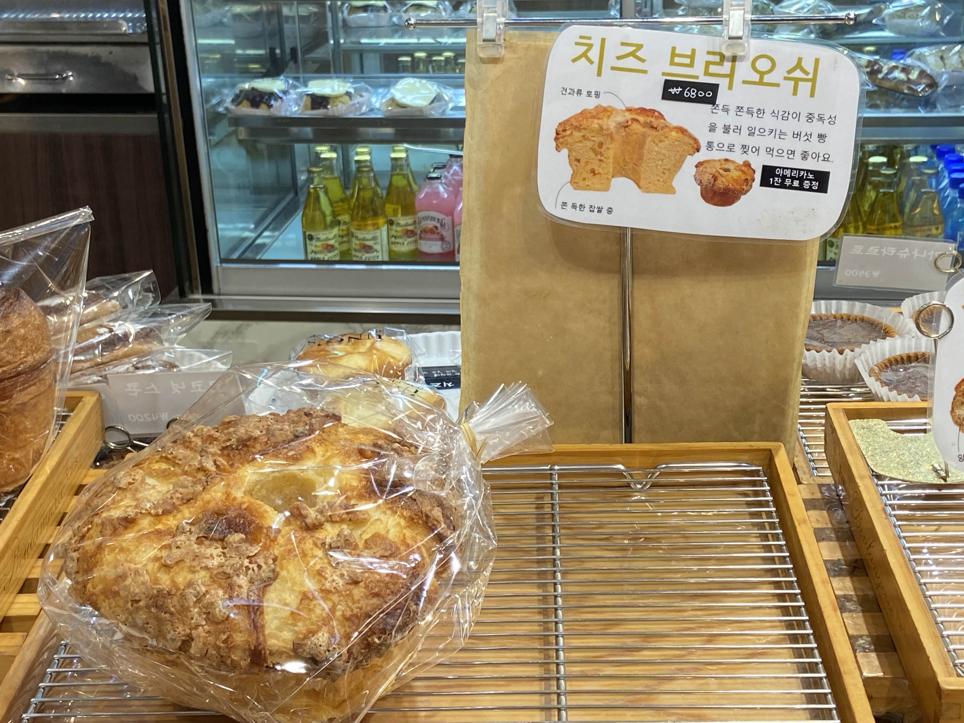 이름에 치즈가 들어가는데 치즈는 전혀 모르겠고, 버섯모양의 모자를 담당하는 부분은 달달하고 견과류가 박혀 있어 고소하고 안에 빵은 퐁신퐁신하니 맛있는 빵이었다.