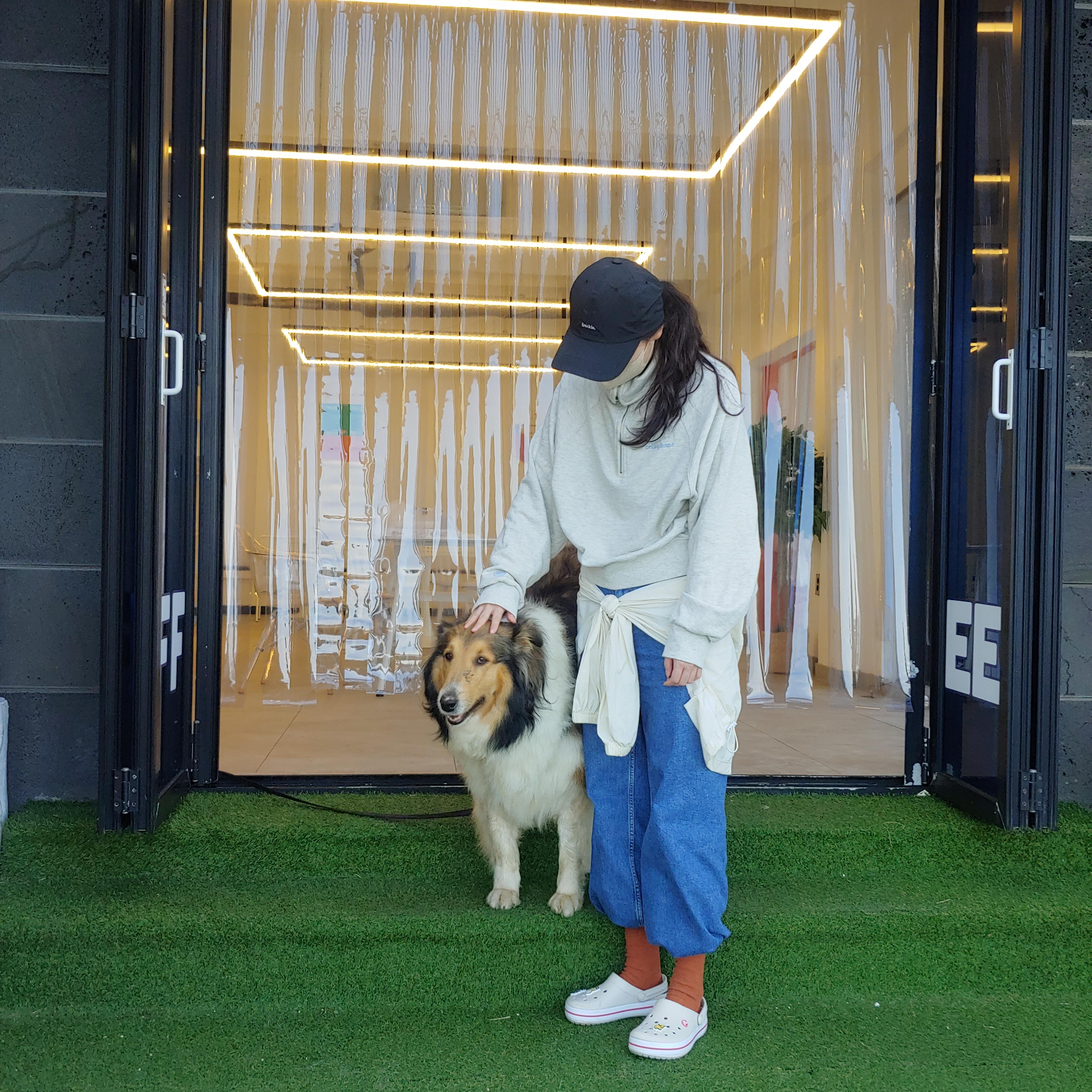 자전거 타고 가다가 우도 문어빵을 파는 곳이 있어서 잠시 멈췄다. 이렇게 군것질 하는 것도 자전거 타기의 묘미! 카페에서 문어빵도 파는데 치즈가 많이 들어 있어서 짱맛이었다. 커다란 멍뭉이랑 인사도 하고 여기에서 기념품으로 할 땅콩이랑 우도 과자들도 샀다.