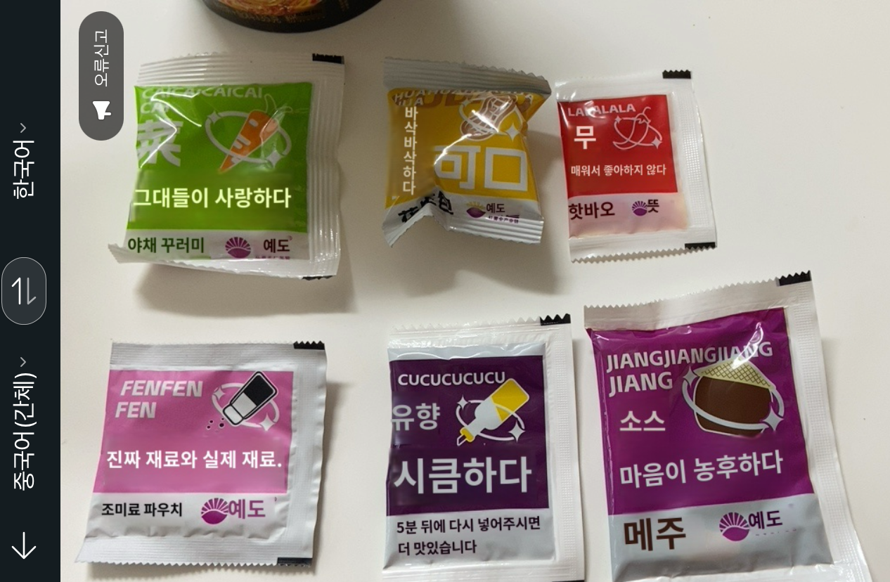 재료가 참 다양한 것도 중국스러워~ 도저히 어떻게 먹는 건지 모르겠으니 파파고의 힘을 빌려.