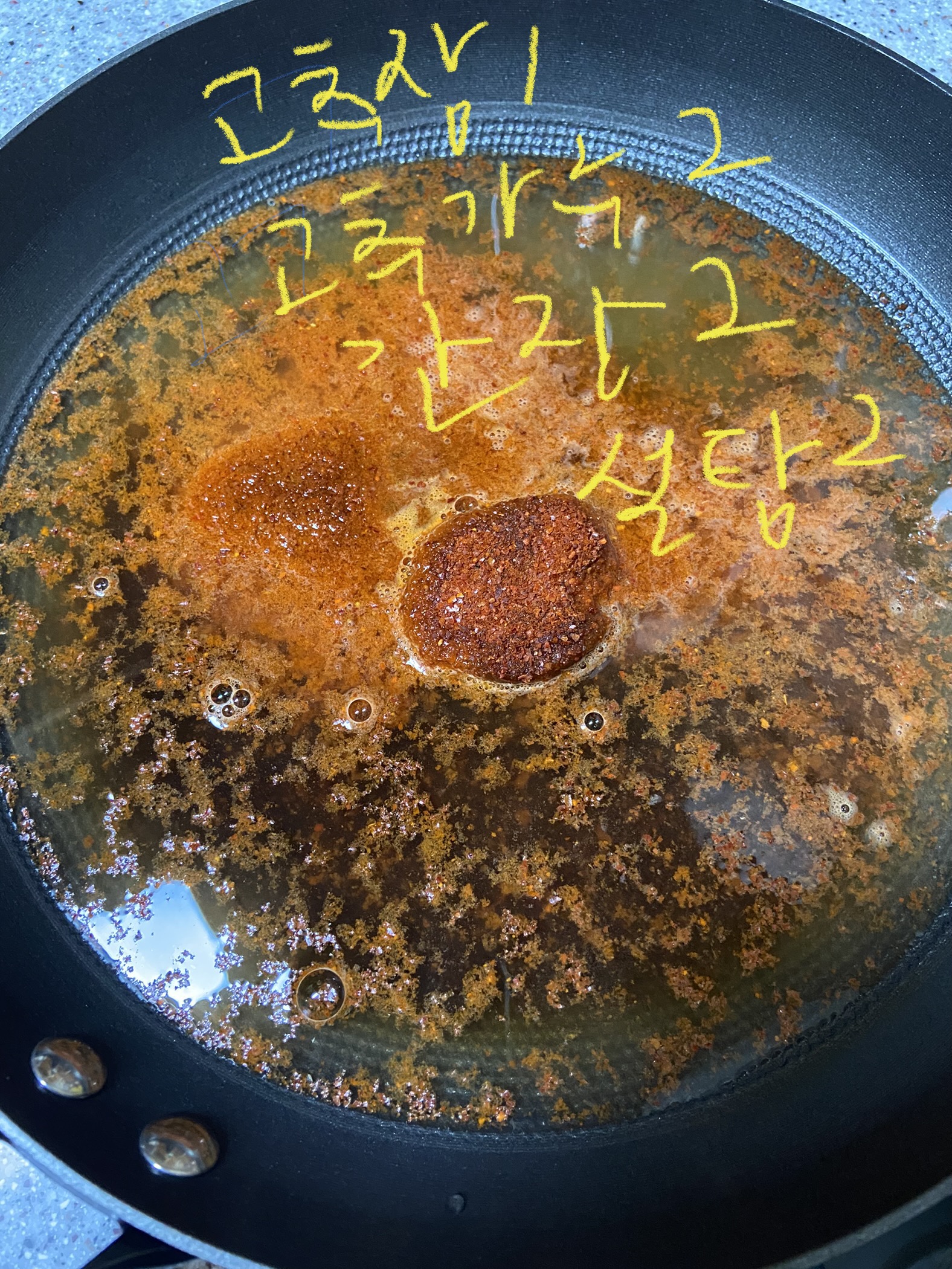 2. 양념 베이스! 기본적인데 걍 맛있는 황금레시피- 고추장 한스푼, 고춧가루 2스푼, 간장 2스푼, 설탕 2스푼이지만 한스푼 반처럼 넣음. 달게 먹음 몸에 안 좋아~