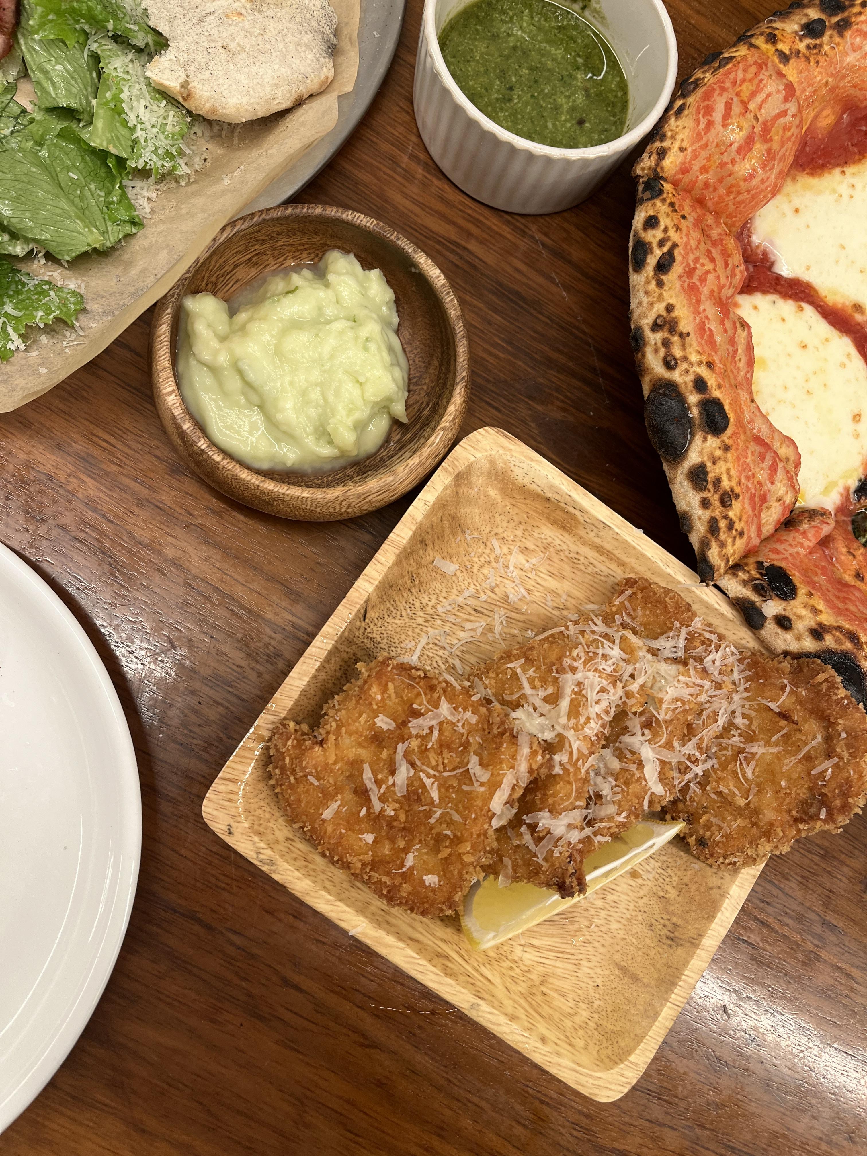우리가 시킨 건 마르게리따 피자, 구우샐러드, 포크슈니첼이다.