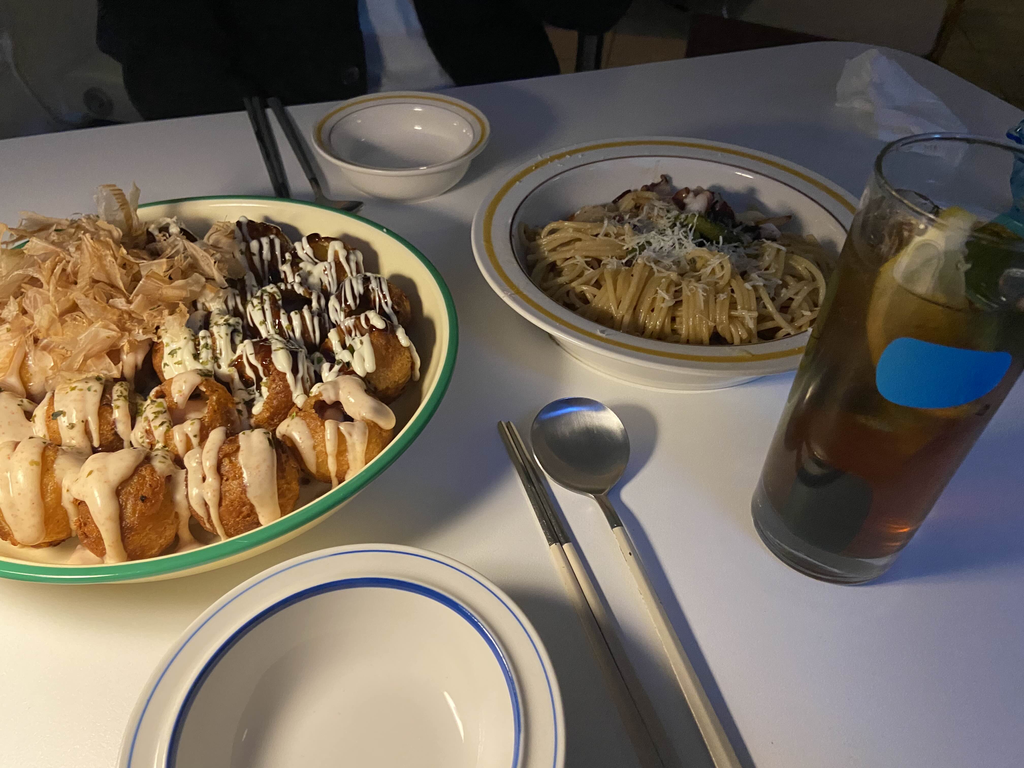 본격적으로 타코야키를 파는 곳! 술을 꼭 시켜야한다고 메뉴판에 적혀있었다. 그치만 운전하는 배우자는 오렌지에이드 마시고, 술찔이인 나는 매장 덕에 오랜만에 매실 하이보루-!
