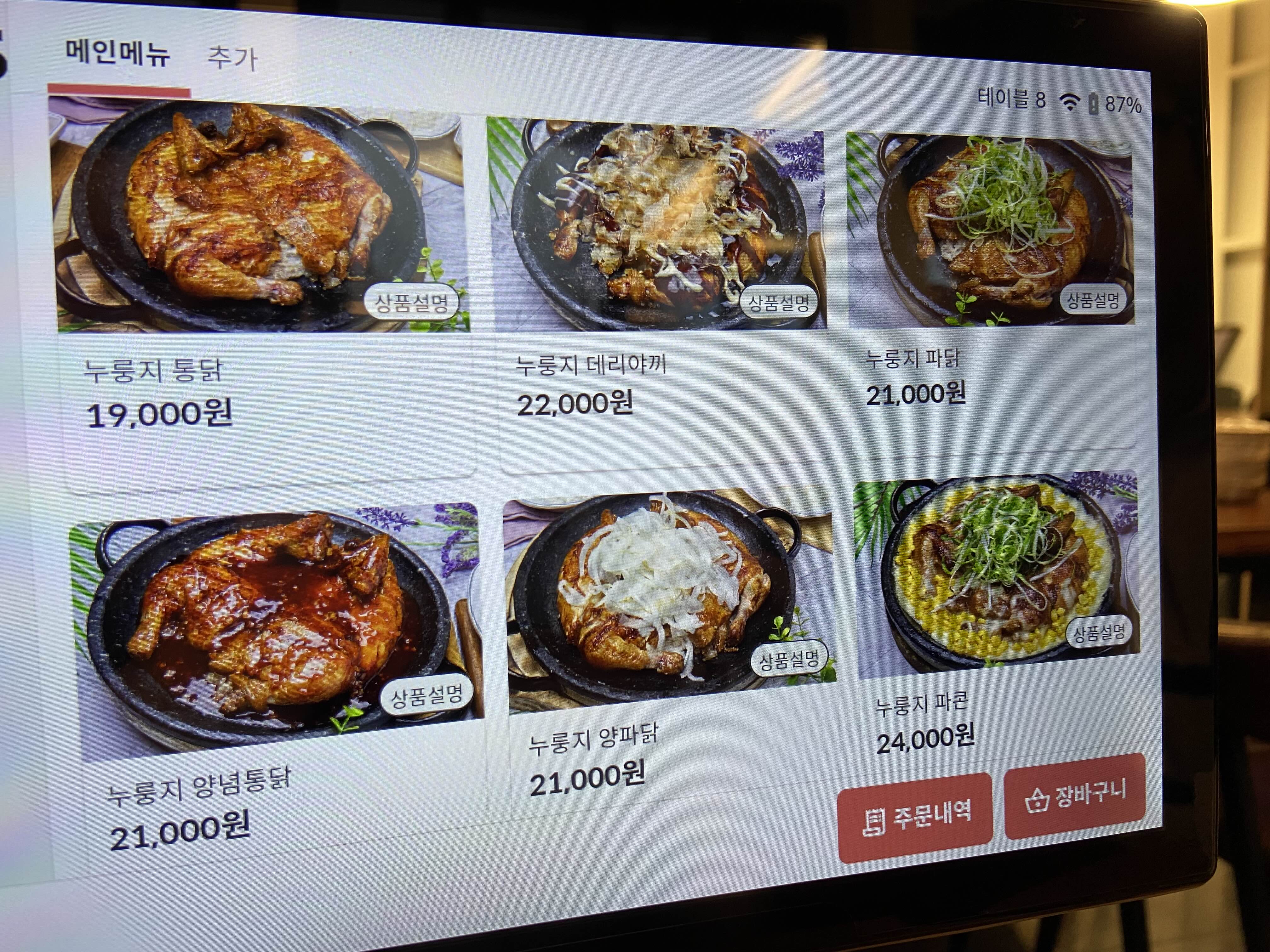 우리는 누룽지 콘닭을 시켰다. 하나만 고르기 어려운 맛있는 통닭이 많았다…!