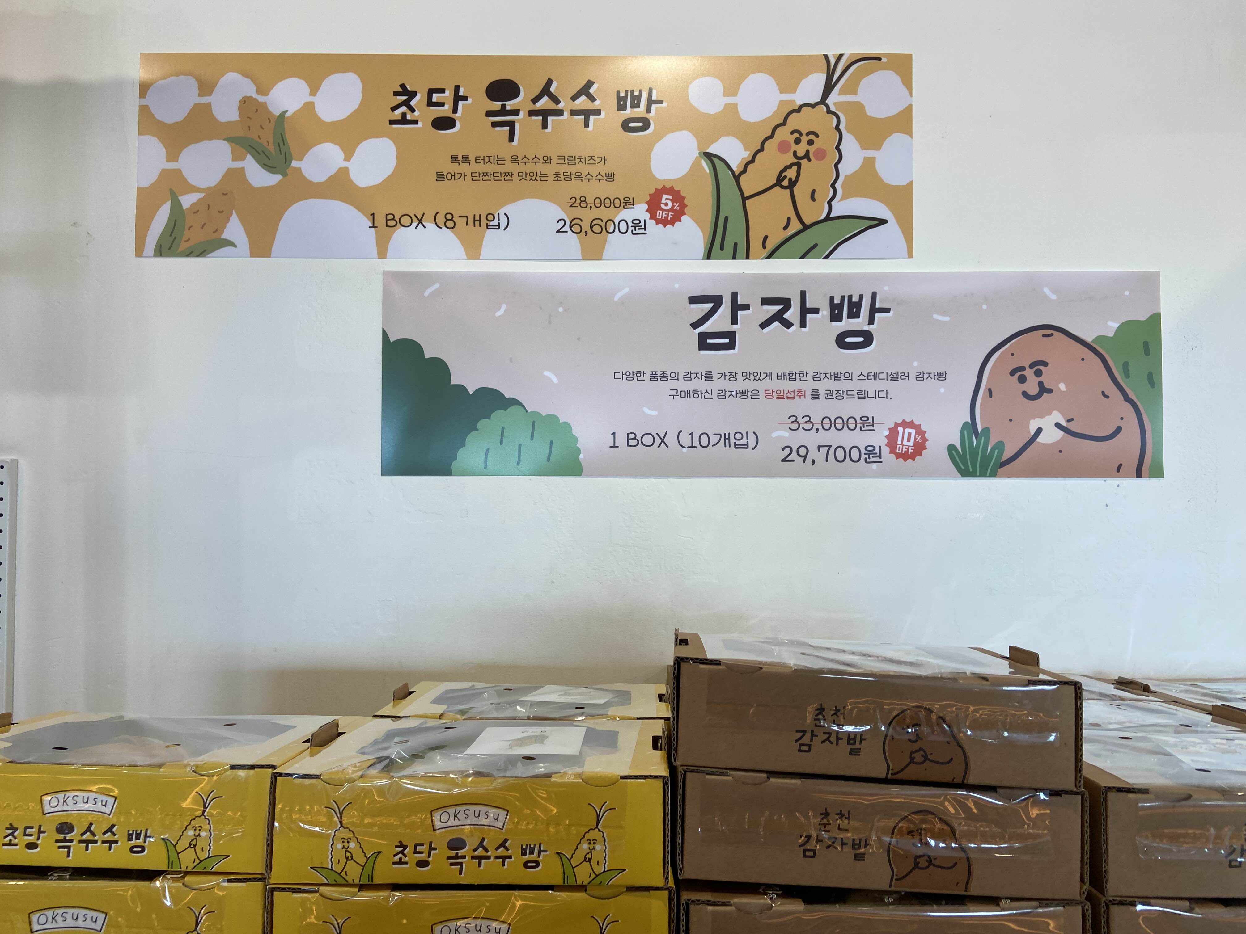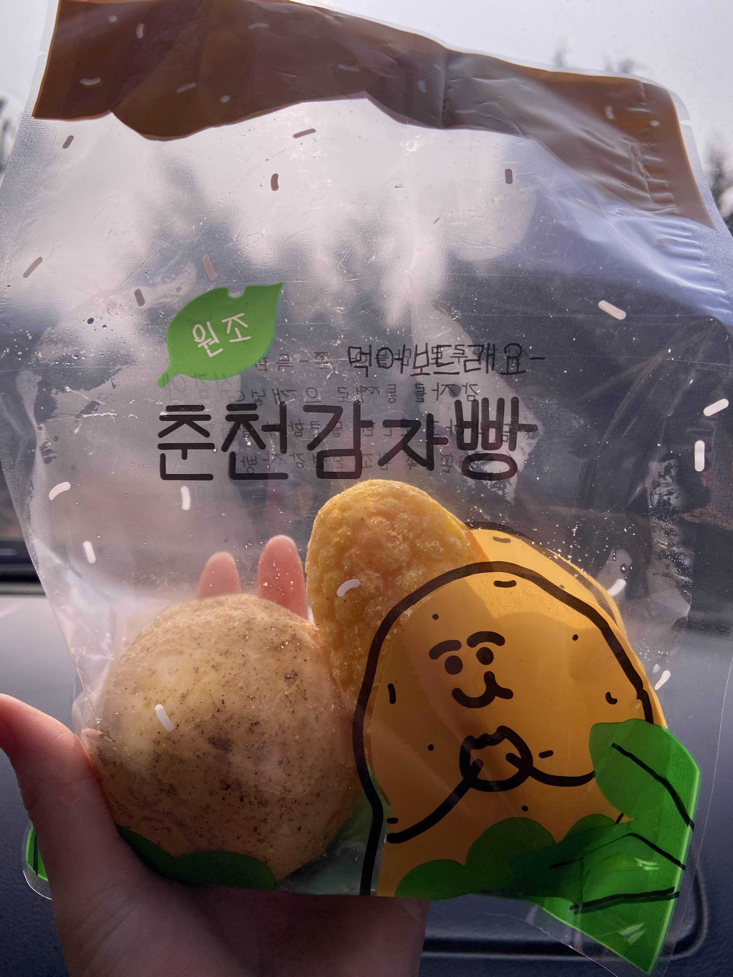 초당옥수수랑 감자빵 하나씩 담아서 테이크 아웃으로 가져갔다.