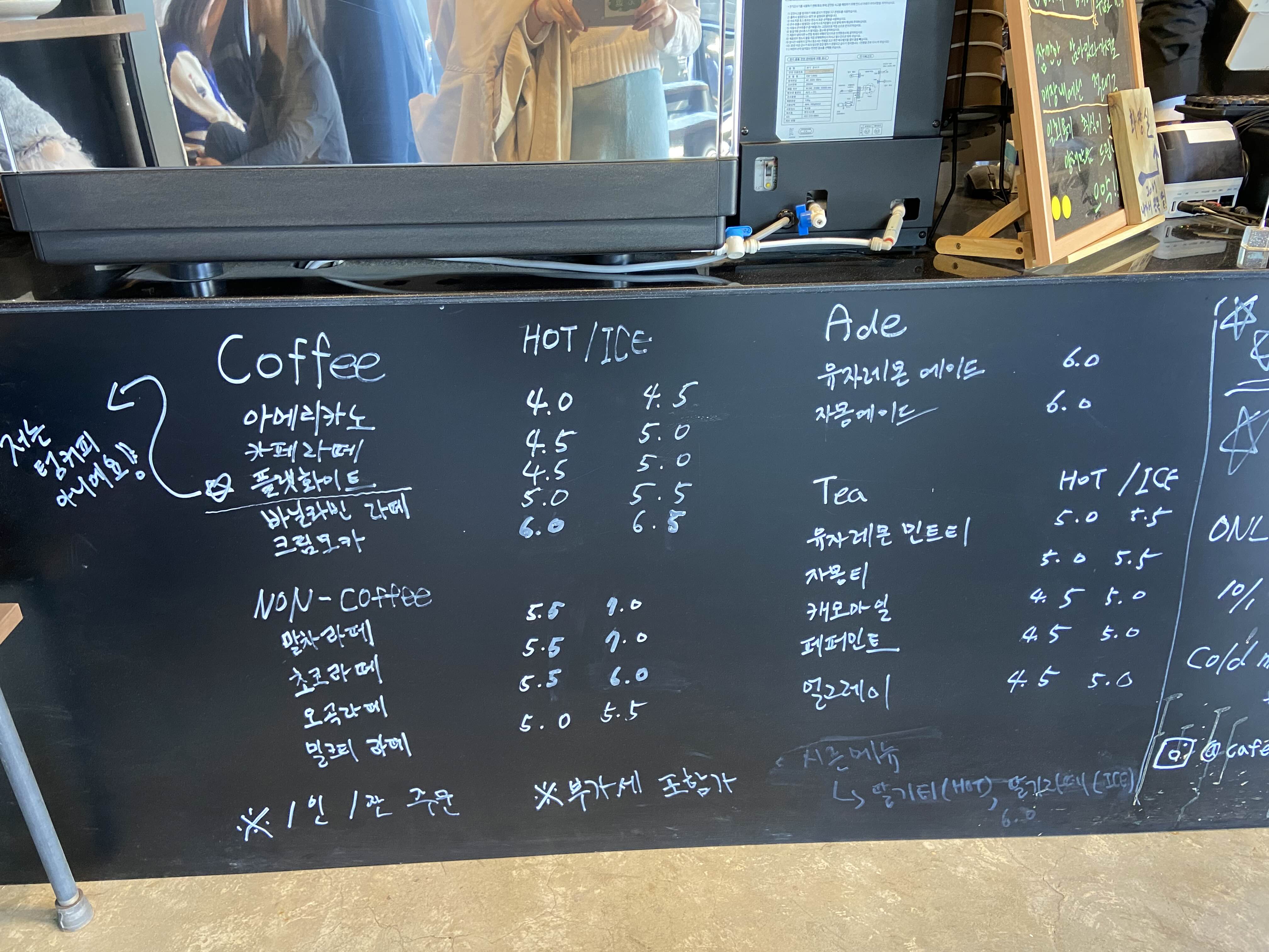 커피가 주력인 곳인 것 같은데 이렇게 디저트로 팔고 있었다. 점심을 든든히 먹고 와서 디저트는 패쓰. 일반적인 디저트들이었지만 팥크림 쑥 크럼블 마들렌은 처음 보는 디저트였다.
