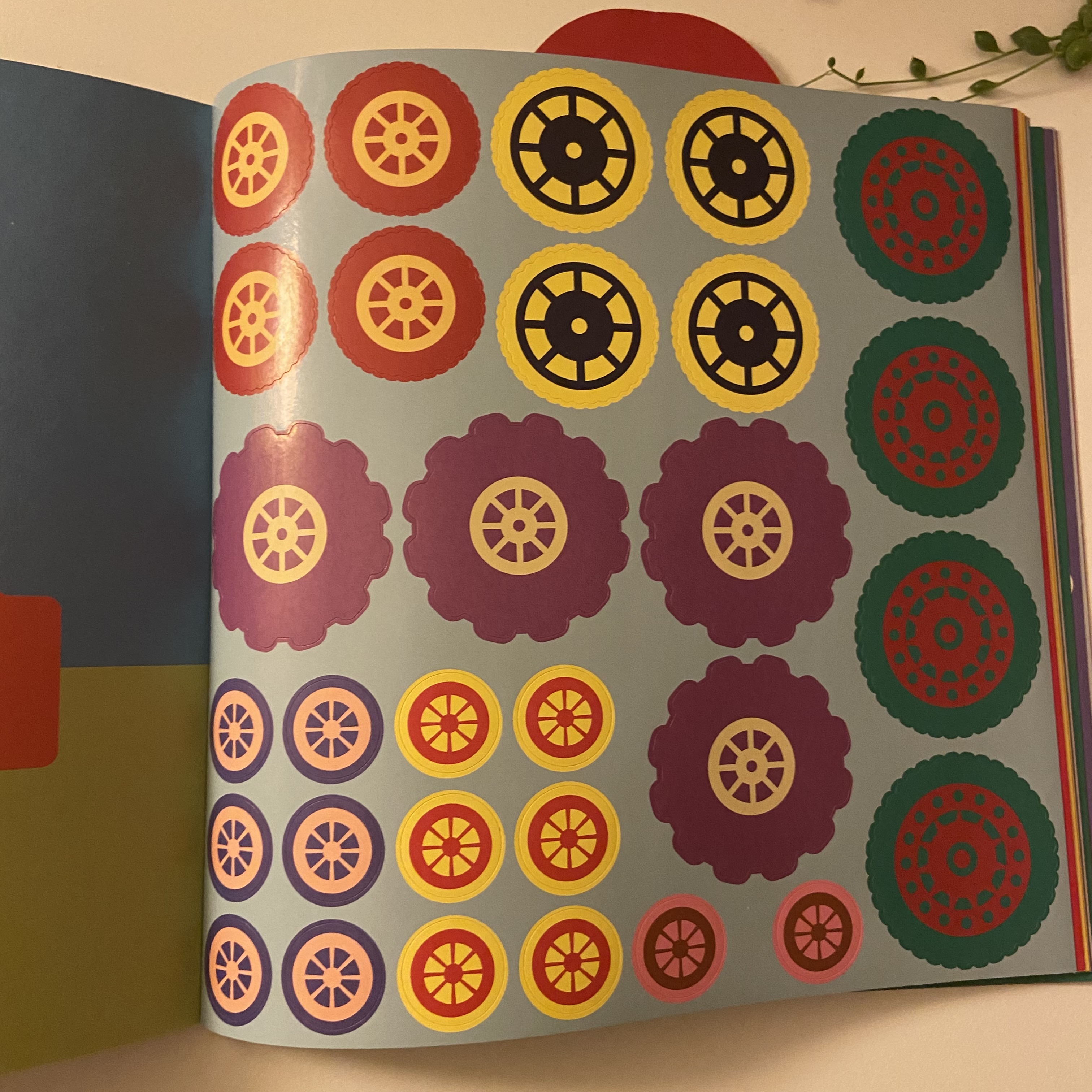 요건 자동차 스티커북이에요! 바퀴 뿐만 아니라 사람들, 날씨, 자동차 용품 스티커도 많이 있어요!