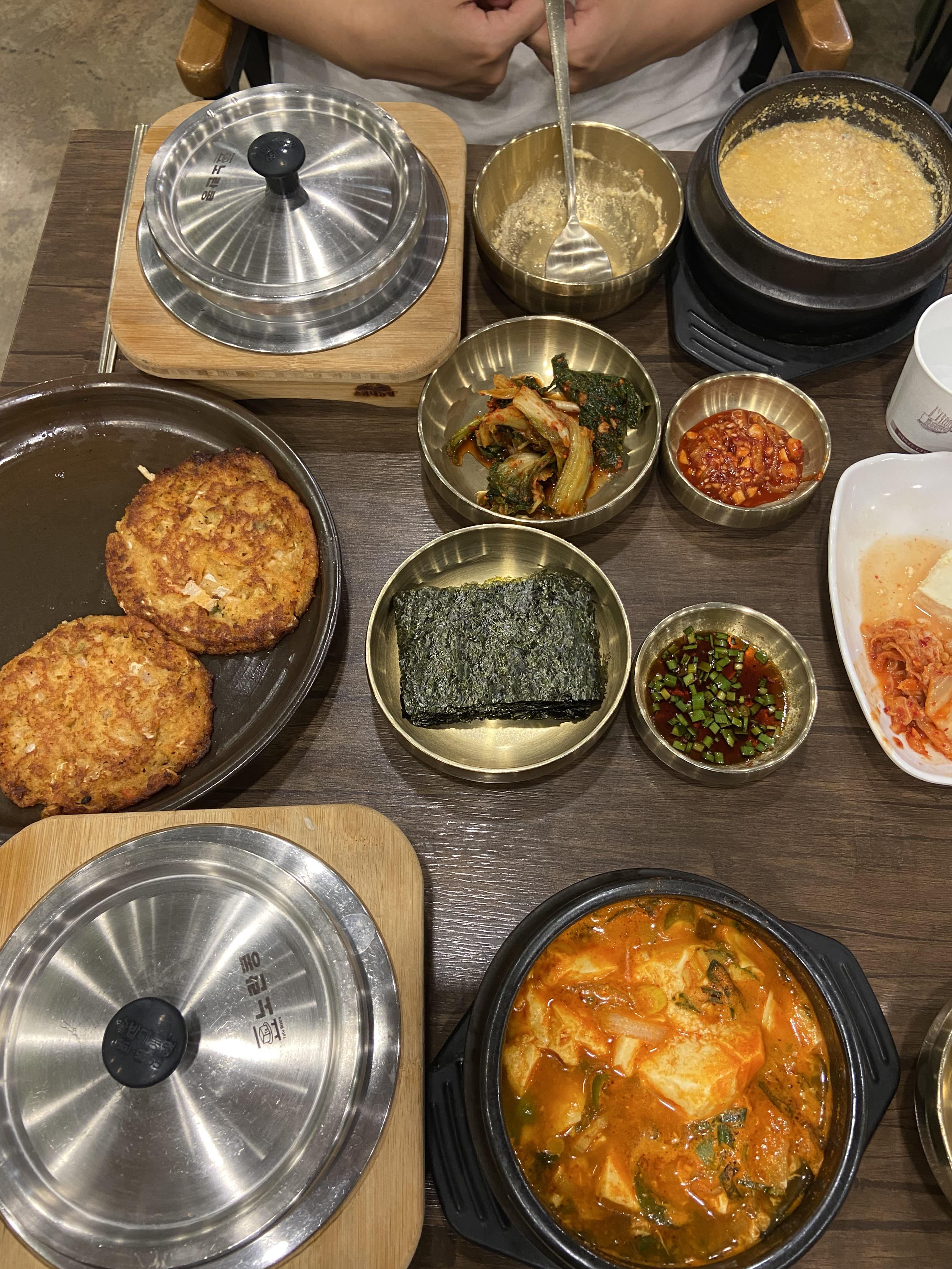 얼큰 순두부는 정말 꽤나 얼큰하다. 신라면보다 좀 더 얼큰한 정도? 그리고 콩비지찌개는 고소하고 감칠맛 돌아서 건강한 한끼로 제격이었다. 저 가격에 솥밥으로 나오고 심지어 식전에 콩물을 주신다... 꾸덕하니 고소한 콩물에 이미 이 곳은 맛집 인정이었다.