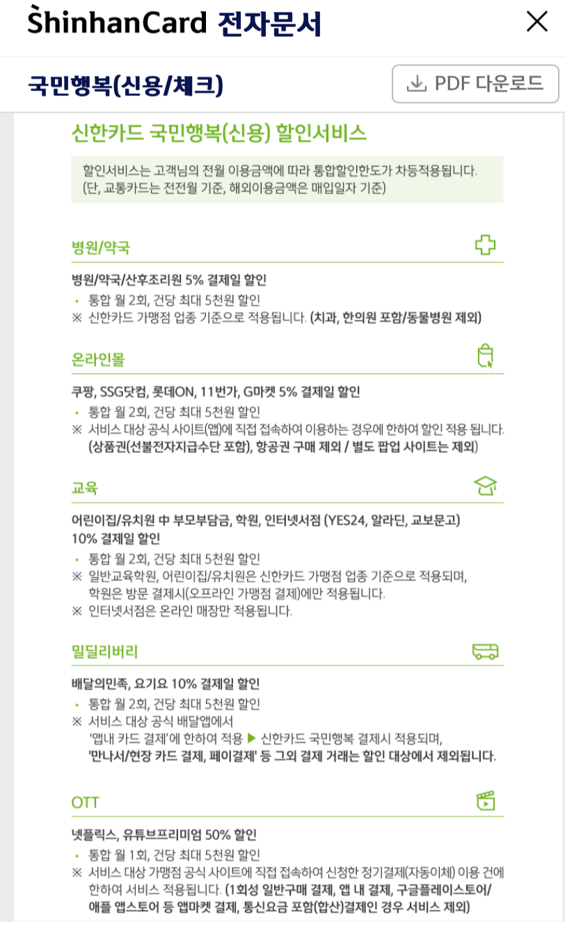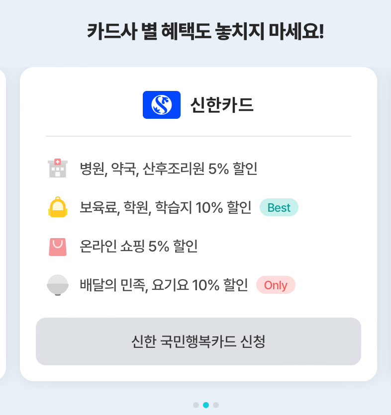 카드사 별 혜택이 다르기 때문에 잘 살펴보고 만들자. 나는 신한카드로 선택했다.